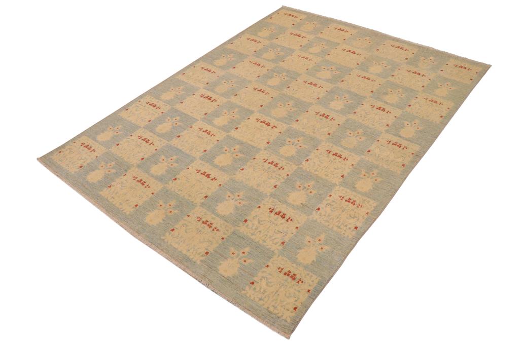 Enhance the ambiance of your home with this magnificent Persian-influenced Turkish hand-knotted rug made by skilled artisans capable of creating the most exceptional vegetable dyes and hand-spun wool. This exquisite handmade rug is a one-of-a-kind Peshawar Kafkaz, otherwise identified as Chobi, Chobi Peshawar, Oushak, or Ziegler rug. These handmade rugs are crafted in Pakistan utilizing superior-quality wool imported from Australia, New Zealand, and Korea in two types of weaves: the Persian weave and the Mori weave. This rug is meticulously crafted by hand using the finest natural vegetable dyes extracted from local plants. The artisans use a blend of hand-spun local and fine merino wool, resulting in a rug with a compelling texture, higher lanolin content, and longer staple. The artisans occasionally incorporate natural or artificial silk into the pile to enhance specific motifs. The finished product is an awe-inspiring flawless design execution and an understated palette that exudes elegance. Contemporary Peshawar rugs draw inspiration from antique Persian designs and feature modern design motifs with vibrant color tones. Hand-knotted with all-natural dyes, resulting in a unique abrash effect and subtle color variations in the pile. Peshawar rugs are known for their stunning and vibrant colors, which were achieved through a process inspired by antique methods. The rug's pile is meticulously trimmed to a moderate thickness and then stone-washed and sun-dried, resulting in a natural sheen and pleasing color tones. Transform the ambiance of your room into a luxurious haven with this gorgeous rug featuring a beautiful color palette. This stunning rug features an intricate oriental design that showcases royalty and seamlessly complements any decor. Its hand-knotted construction and natural fibers provide a soft and comfortable feel underfoot, making it the perfect addition to any room.