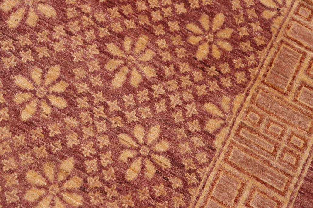 Enhance the ambiance of your home with this magnificent Persian-influenced Turkish hand-knotted rug made by skilled artisans capable of creating the most exceptional vegetable dyes and hand-spun wool. This exquisite handmade rug is a one-of-a-kind Peshawar Kafkaz, otherwise identified as Chobi, Chobi Peshawar, Oushak, or Ziegler rug. These handmade rugs are crafted in Pakistan utilizing superior-quality wool imported from Australia, New Zealand, and Korea in two types of weaves: the Persian weave and the Mori weave. This rug is meticulously crafted by hand using the finest natural vegetable dyes extracted from local plants. The artisans use a blend of hand-spun local and fine merino wool, resulting in a rug with a compelling texture, higher lanolin content, and longer staple. The artisans occasionally incorporate natural or artificial silk into the pile to enhance specific motifs. The finished product is an awe-inspiring flawless design execution and an understated palette that exudes elegance. Contemporary Peshawar rugs draw inspiration from antique Persian designs and feature modern design motifs with vibrant color tones. Hand-knotted with all-natural dyes, resulting in a unique abrash effect and subtle color variations in the pile. Peshawar rugs are known for their stunning and vibrant colors, which were achieved through a process inspired by antique methods. The rug's pile is meticulously trimmed to a moderate thickness and then stone-washed and sun-dried, resulting in a natural sheen and pleasing color tones. Transform the ambiance of your room into a luxurious haven with this gorgeous rug featuring a beautiful color palette. This stunning rug features an intricate oriental design that showcases royalty and seamlessly complements any decor. Its hand-knotted construction and natural fibers provide a soft and comfortable feel underfoot, making it the perfect addition to any room.