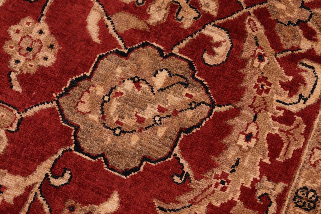 Enhance the ambiance of your home with this magnificent Persian-influenced Turkish hand-knotted rug made by skilled artisans capable of creating the most exceptional vegetable dyes and hand-spun wool. This exquisite handmade rug is a one-of-a-kind Peshawar Kafkaz, otherwise identified as Chobi, Chobi Peshawar, Oushak, or Ziegler rug. These handmade rugs are crafted in Pakistan utilizing superior-quality wool imported from Australia, New Zealand, and Korea in two types of weaves: the Persian weave and the Mori weave. This rug is meticulously crafted by hand using the finest natural vegetable dyes extracted from local plants. The artisans use a blend of hand-spun local and fine merino wool, resulting in a rug with a compelling texture, higher lanolin content, and longer staple. The artisans occasionally incorporate natural or artificial silk into the pile to enhance specific motifs. The finished product is an awe-inspiring flawless design execution and an understated palette that exudes elegance. Contemporary Peshawar rugs draw inspiration from antique Persian designs and feature modern design motifs with vibrant color tones. Hand-knotted with all-natural dyes, resulting in a unique abrash effect and subtle color variations in the pile. Peshawar rugs are known for their stunning and vibrant colors, which were achieved through a process inspired by antique methods. The rug's pile is meticulously trimmed to a moderate thickness and then stone-washed and sun-dried, resulting in a natural sheen and pleasing color tones. Transform the ambiance of your room into a luxurious haven with this gorgeous rug featuring a beautiful color palette. This stunning rug features an intricate oriental design that showcases royalty and seamlessly complements any decor. Its hand-knotted construction and natural fibers provide a soft and comfortable feel underfoot, making it the perfect addition to any room.