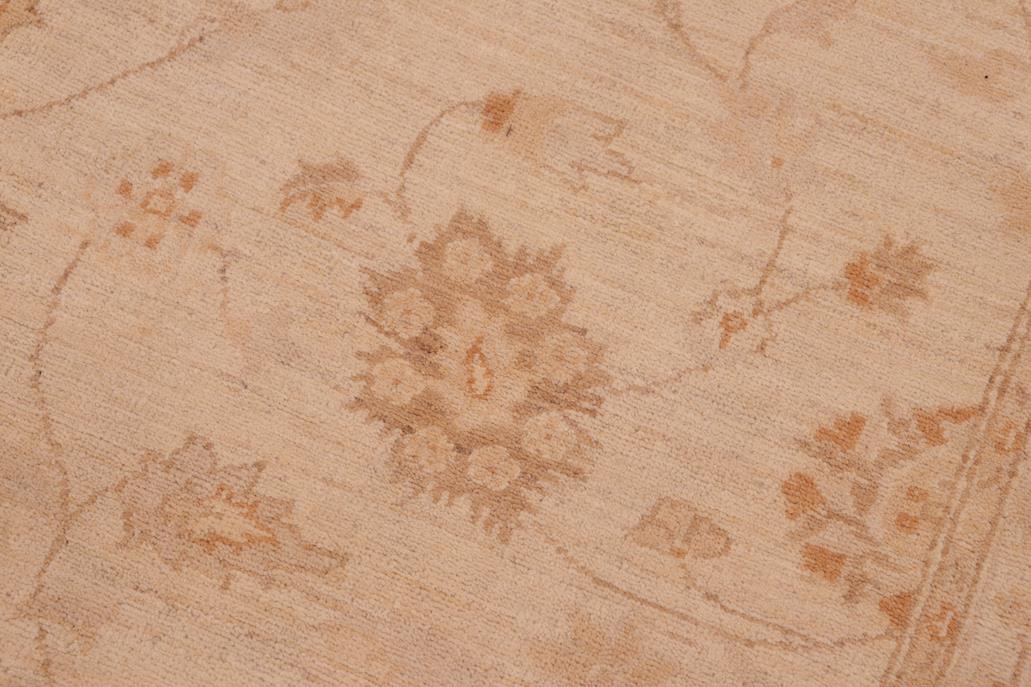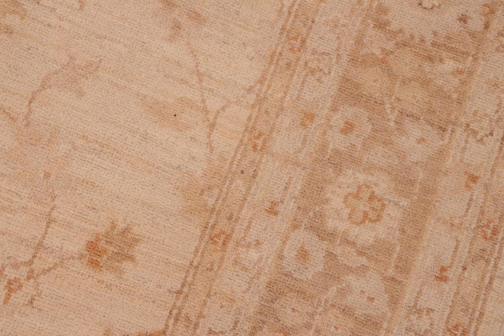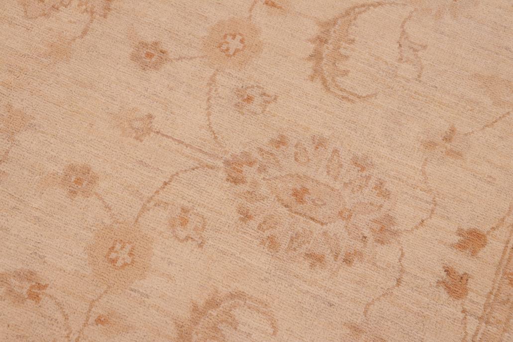Enhance the ambiance of your home with this magnificent Persian-influenced Turkish hand-knotted rug made by skilled artisans capable of creating the most exceptional vegetable dyes and hand-spun wool. This exquisite handmade rug is a one-of-a-kind Peshawar Kafkaz, otherwise identified as Chobi, Chobi Peshawar, Oushak, or Ziegler rug. These handmade rugs are crafted in Pakistan utilizing superior-quality wool imported from Australia, New Zealand, and Korea in two types of weaves: the Persian weave and the Mori weave. This rug is meticulously crafted by hand using the finest natural vegetable dyes extracted from local plants. The artisans use a blend of hand-spun local and fine merino wool, resulting in a rug with a compelling texture, higher lanolin content, and longer staple. The artisans occasionally incorporate natural or artificial silk into the pile to enhance specific motifs. The finished product is an awe-inspiring flawless design execution and an understated palette that exudes elegance. Contemporary Peshawar rugs draw inspiration from antique Persian designs and feature modern design motifs with vibrant color tones. Hand-knotted with all-natural dyes, resulting in a unique abrash effect and subtle color variations in the pile. Peshawar rugs are known for their stunning and vibrant colors, which were achieved through a process inspired by antique methods. The rug's pile is meticulously trimmed to a moderate thickness and then stone-washed and sun-dried, resulting in a natural sheen and pleasing color tones. Transform the ambiance of your room into a luxurious haven with this gorgeous rug featuring a beautiful color palette. This stunning rug features an intricate oriental design that showcases royalty and seamlessly complements any decor. Its hand-knotted construction and natural fibers provide a soft and comfortable feel underfoot, making it the perfect addition to any room.