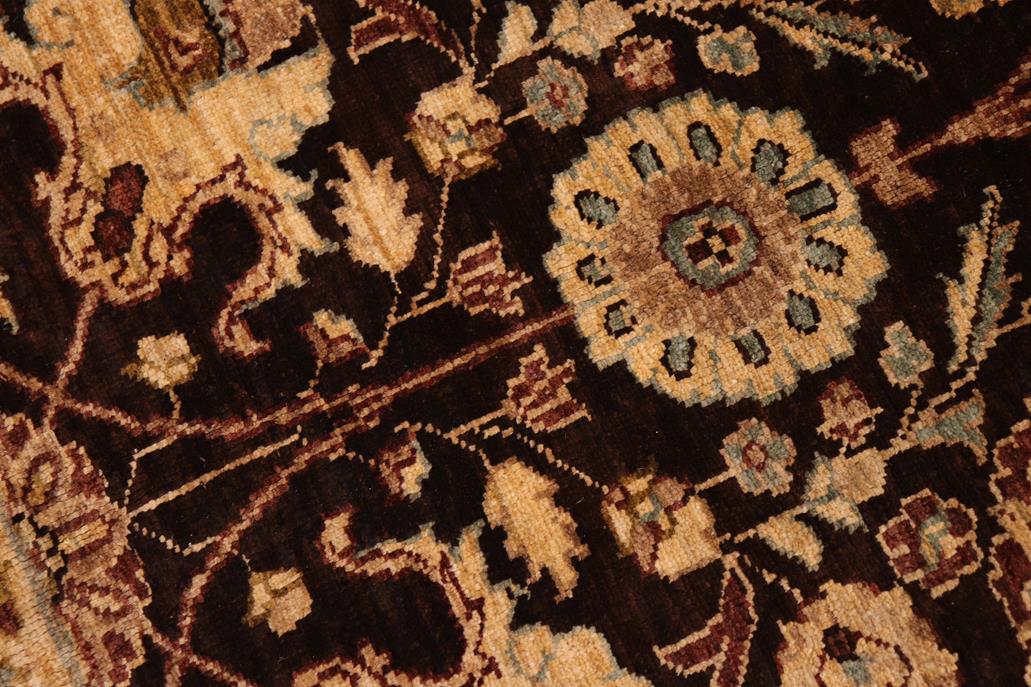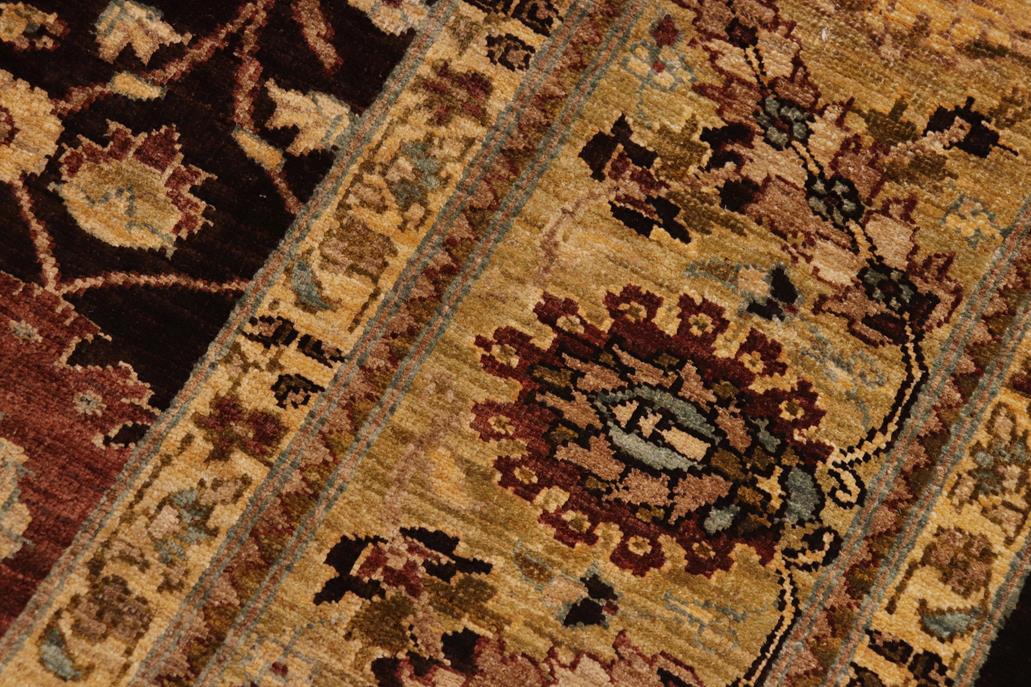 Enhance the ambiance of your home with this magnificent Persian-influenced Turkish hand-knotted rug made by skilled artisans capable of creating the most exceptional vegetable dyes and hand-spun wool. This exquisite handmade rug is a one-of-a-kind Peshawar Kafkaz, otherwise identified as Chobi, Chobi Peshawar, Oushak, or Ziegler rug. These handmade rugs are crafted in Pakistan utilizing superior-quality wool imported from Australia, New Zealand, and Korea in two types of weaves: the Persian weave and the Mori weave. This rug is meticulously crafted by hand using the finest natural vegetable dyes extracted from local plants. The artisans use a blend of hand-spun local and fine merino wool, resulting in a rug with a compelling texture, higher lanolin content, and longer staple. The artisans occasionally incorporate natural or artificial silk into the pile to enhance specific motifs. The finished product is an awe-inspiring flawless design execution and an understated palette that exudes elegance. Contemporary Peshawar rugs draw inspiration from antique Persian designs and feature modern design motifs with vibrant color tones. Hand-knotted with all-natural dyes, resulting in a unique abrash effect and subtle color variations in the pile. Peshawar rugs are known for their stunning and vibrant colors, which were achieved through a process inspired by antique methods. The rug's pile is meticulously trimmed to a moderate thickness and then stone-washed and sun-dried, resulting in a natural sheen and pleasing color tones. Transform the ambiance of your room into a luxurious haven with this gorgeous rug featuring a beautiful color palette. This stunning rug features an intricate oriental design that showcases royalty and seamlessly complements any decor. Its hand-knotted construction and natural fibers provide a soft and comfortable feel underfoot, making it the perfect addition to any room.