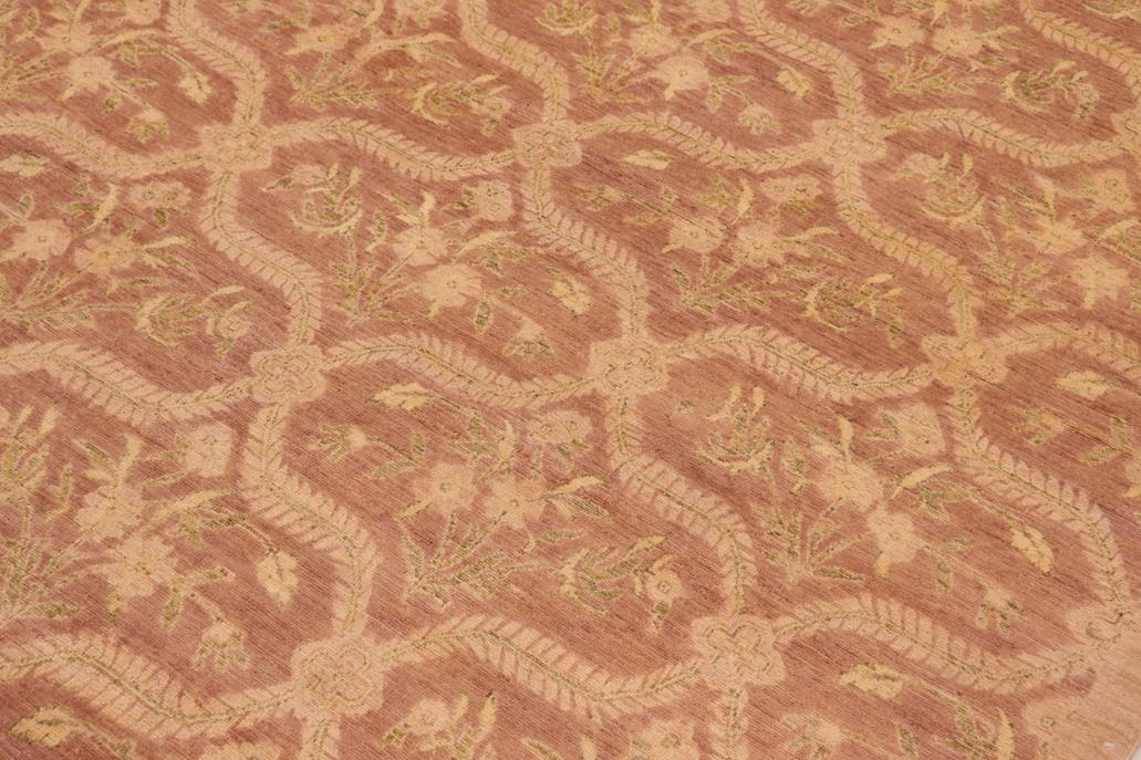 Enhance the ambiance of your home with this magnificent Persian-influenced Turkish hand-knotted rug made by skilled artisans capable of creating the most exceptional vegetable dyes and hand-spun wool. This exquisite handmade rug is a one-of-a-kind Peshawar Kafkaz, otherwise identified as Chobi, Chobi Peshawar, Oushak, or Ziegler rug. These handmade rugs are crafted in Pakistan utilizing superior-quality wool imported from Australia, New Zealand, and Korea in two types of weaves: the Persian weave and the Mori weave. This rug is meticulously crafted by hand using the finest natural vegetable dyes extracted from local plants. The artisans use a blend of hand-spun local and fine merino wool, resulting in a rug with a compelling texture, higher lanolin content, and longer staple. The artisans occasionally incorporate natural or artificial silk into the pile to enhance specific motifs. The finished product is an awe-inspiring flawless design execution and an understated palette that exudes elegance. Contemporary Peshawar rugs draw inspiration from antique Persian designs and feature modern design motifs with vibrant color tones. Hand-knotted with all-natural dyes, resulting in a unique abrash effect and subtle color variations in the pile. Peshawar rugs are known for their stunning and vibrant colors, which were achieved through a process inspired by antique methods. The rug's pile is meticulously trimmed to a moderate thickness and then stone-washed and sun-dried, resulting in a natural sheen and pleasing color tones. Transform the ambiance of your room into a luxurious haven with this gorgeous rug featuring a beautiful color palette. This stunning rug features an intricate oriental design that showcases royalty and seamlessly complements any decor. Its hand-knotted construction and natural fibers provide a soft and comfortable feel underfoot, making it the perfect addition to any room.
