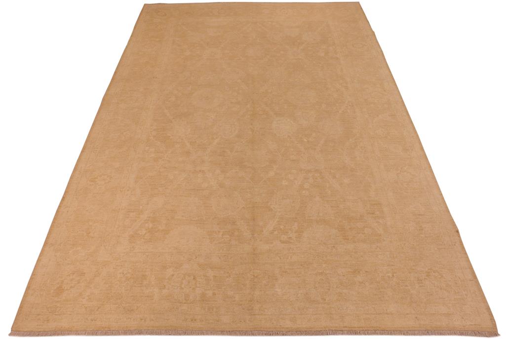 Enhance the ambiance of your home with this magnificent Persian-influenced Turkish hand-knotted rug made by skilled artisans capable of creating the most exceptional vegetable dyes and hand-spun wool. This exquisite handmade rug is a one-of-a-kind Peshawar Kafkaz, otherwise identified as Chobi, Chobi Peshawar, Oushak, or Ziegler rug. These handmade rugs are crafted in Pakistan utilizing superior-quality wool imported from Australia, New Zealand, and Korea in two types of weaves: the Persian weave and the Mori weave. This rug is meticulously crafted by hand using the finest natural vegetable dyes extracted from local plants. The artisans use a blend of hand-spun local and fine merino wool, resulting in a rug with a compelling texture, higher lanolin content, and longer staple. The artisans occasionally incorporate natural or artificial silk into the pile to enhance specific motifs. The finished product is an awe-inspiring flawless design execution and an understated palette that exudes elegance. Contemporary Peshawar rugs draw inspiration from antique Persian designs and feature modern design motifs with vibrant color tones. Hand-knotted with all-natural dyes, resulting in a unique abrash effect and subtle color variations in the pile. Peshawar rugs are known for their stunning and vibrant colors, which were achieved through a process inspired by antique methods. The rug's pile is meticulously trimmed to a moderate thickness and then stone-washed and sun-dried, resulting in a natural sheen and pleasing color tones. Transform the ambiance of your room into a luxurious haven with this gorgeous rug featuring a beautiful color palette. This stunning rug features an intricate oriental design that showcases royalty and seamlessly complements any decor. Its hand-knotted construction and natural fibers provide a soft and comfortable feel underfoot, making it the perfect addition to any room.