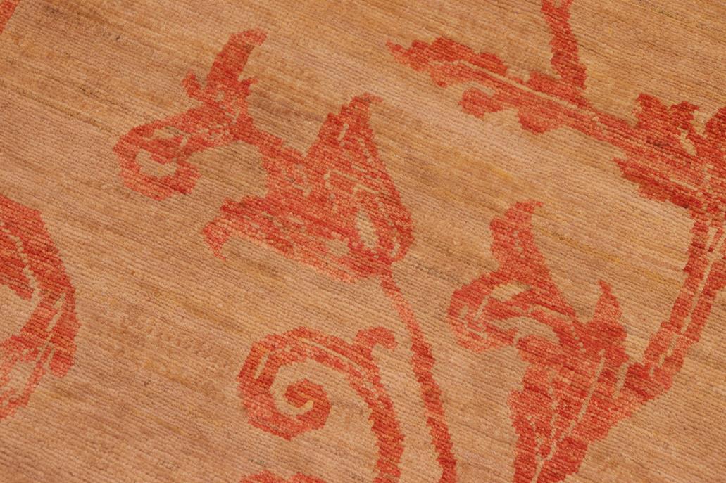 Enhance the ambiance of your home with this magnificent Persian-influenced Turkish hand-knotted rug made by skilled artisans capable of creating the most exceptional vegetable dyes and hand-spun wool. This exquisite handmade rug is a one-of-a-kind Peshawar Kafkaz, otherwise identified as Chobi, Chobi Peshawar, Oushak, or Ziegler rug. These handmade rugs are crafted in Pakistan utilizing superior-quality wool imported from Australia, New Zealand, and Korea in two types of weaves: the Persian weave and the Mori weave. This rug is meticulously crafted by hand using the finest natural vegetable dyes extracted from local plants. The artisans use a blend of hand-spun local and fine merino wool, resulting in a rug with a compelling texture, higher lanolin content, and longer staple. The artisans occasionally incorporate natural or artificial silk into the pile to enhance specific motifs. The finished product is an awe-inspiring flawless design execution and an understated palette that exudes elegance. Contemporary Peshawar rugs draw inspiration from antique Persian designs and feature modern design motifs with vibrant color tones. Hand-knotted with all-natural dyes, resulting in a unique abrash effect and subtle color variations in the pile. Peshawar rugs are known for their stunning and vibrant colors, which were achieved through a process inspired by antique methods. The rug's pile is meticulously trimmed to a moderate thickness and then stone-washed and sun-dried, resulting in a natural sheen and pleasing color tones. Transform the ambiance of your room into a luxurious haven with this gorgeous rug featuring a beautiful color palette. This stunning rug features an intricate oriental design that showcases royalty and seamlessly complements any decor. Its hand-knotted construction and natural fibers provide a soft and comfortable feel underfoot, making it the perfect addition to any room.