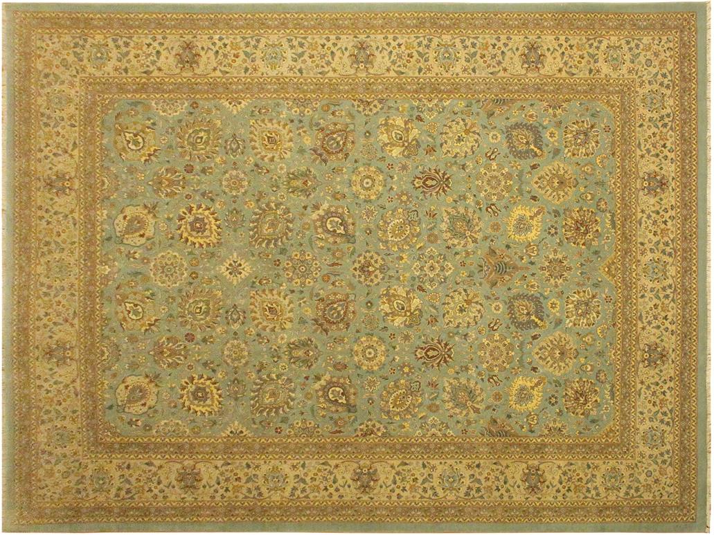 Turkish Knotted Istanbul Josphine Blue/ Tan Wool Rug - 9'2'' x 11'11''