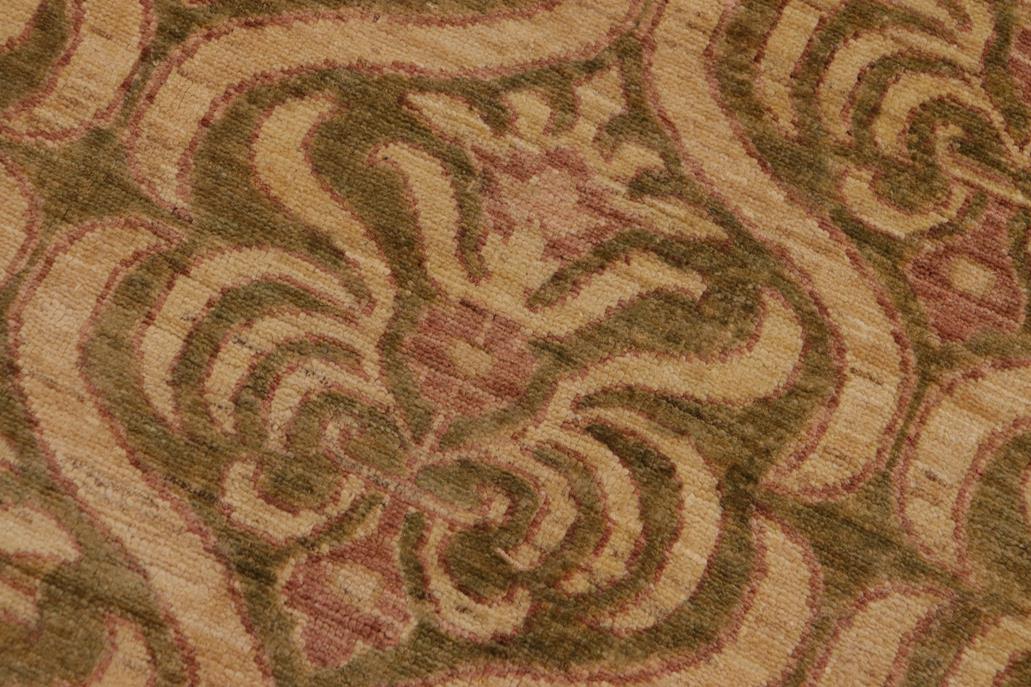 Enhance the ambiance of your home with this magnificent Persian-influenced Turkish hand-knotted rug made by skilled artisans capable of creating the most exceptional vegetable dyes and hand-spun wool. This exquisite handmade rug is a one-of-a-kind Peshawar Kafkaz, otherwise identified as Chobi, Chobi Peshawar, Oushak, or Ziegler rug. These handmade rugs are crafted in Pakistan utilizing superior-quality wool imported from Australia, New Zealand, and Korea in two types of weaves: the Persian weave and the Mori weave. This rug is meticulously crafted by hand using the finest natural vegetable dyes extracted from local plants. The artisans use a blend of hand-spun local and fine merino wool, resulting in a rug with a compelling texture, higher lanolin content, and longer staple. The artisans occasionally incorporate natural or artificial silk into the pile to enhance specific motifs. The finished product is an awe-inspiring flawless design execution and an understated palette that exudes elegance. Contemporary Peshawar rugs draw inspiration from antique Persian designs and feature modern design motifs with vibrant color tones. Hand-knotted with all-natural dyes, resulting in a unique abrash effect and subtle color variations in the pile. Peshawar rugs are known for their stunning and vibrant colors, which were achieved through a process inspired by antique methods. The rug's pile is meticulously trimmed to a moderate thickness and then stone-washed and sun-dried, resulting in a natural sheen and pleasing color tones. Transform the ambiance of your room into a luxurious haven with this gorgeous rug featuring a beautiful color palette. This stunning rug features an intricate oriental design that showcases royalty and seamlessly complements any decor. Its hand-knotted construction and natural fibers provide a soft and comfortable feel underfoot, making it the perfect addition to any room.