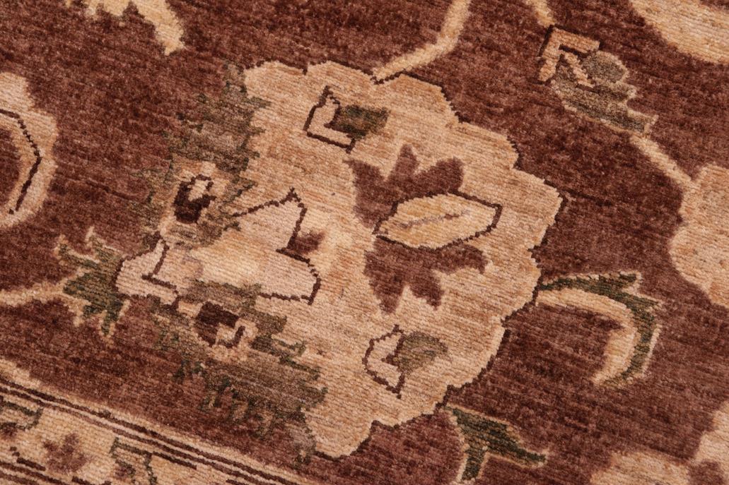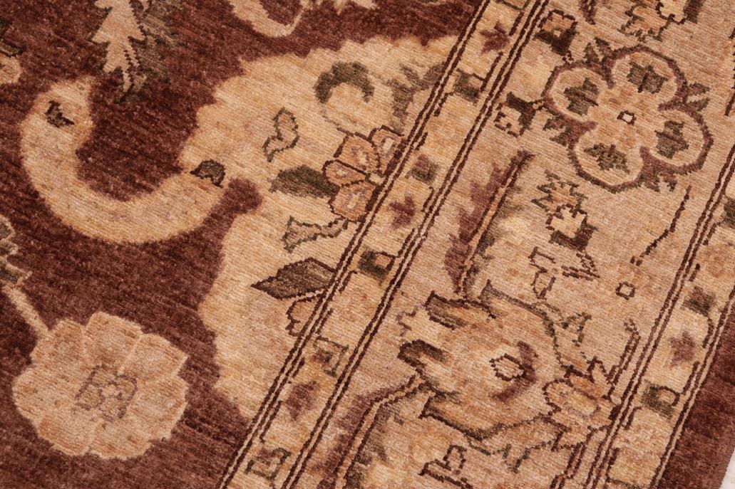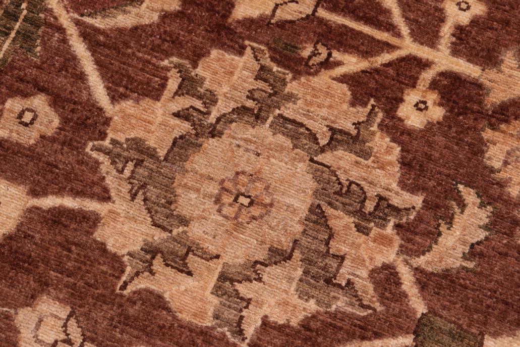 Enhance the ambiance of your home with this magnificent Persian-influenced Turkish hand-knotted rug made by skilled artisans capable of creating the most exceptional vegetable dyes and hand-spun wool. This exquisite handmade rug is a one-of-a-kind Peshawar Kafkaz, otherwise identified as Chobi, Chobi Peshawar, Oushak, or Ziegler rug. These handmade rugs are crafted in Pakistan utilizing superior-quality wool imported from Australia, New Zealand, and Korea in two types of weaves: the Persian weave and the Mori weave. This rug is meticulously crafted by hand using the finest natural vegetable dyes extracted from local plants. The artisans use a blend of hand-spun local and fine merino wool, resulting in a rug with a compelling texture, higher lanolin content, and longer staple. The artisans occasionally incorporate natural or artificial silk into the pile to enhance specific motifs. The finished product is an awe-inspiring flawless design execution and an understated palette that exudes elegance. Contemporary Peshawar rugs draw inspiration from antique Persian designs and feature modern design motifs with vibrant color tones. Hand-knotted with all-natural dyes, resulting in a unique abrash effect and subtle color variations in the pile. Peshawar rugs are known for their stunning and vibrant colors, which were achieved through a process inspired by antique methods. The rug's pile is meticulously trimmed to a moderate thickness and then stone-washed and sun-dried, resulting in a natural sheen and pleasing color tones. Transform the ambiance of your room into a luxurious haven with this gorgeous rug featuring a beautiful color palette. This stunning rug features an intricate oriental design that showcases royalty and seamlessly complements any decor. Its hand-knotted construction and natural fibers provide a soft and comfortable feel underfoot, making it the perfect addition to any room.