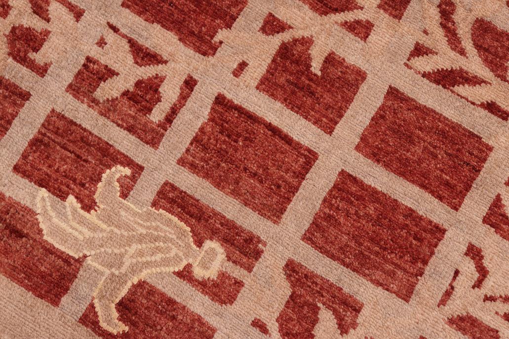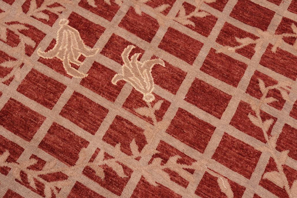 Enhance the ambiance of your home with this magnificent Persian-influenced Turkish hand-knotted rug made by skilled artisans capable of creating the most exceptional vegetable dyes and hand-spun wool. This exquisite handmade rug is a one-of-a-kind Peshawar Kafkaz, otherwise identified as Chobi, Chobi Peshawar, Oushak, or Ziegler rug. These handmade rugs are crafted in Pakistan utilizing superior-quality wool imported from Australia, New Zealand, and Korea in two types of weaves: the Persian weave and the Mori weave. This rug is meticulously crafted by hand using the finest natural vegetable dyes extracted from local plants. The artisans use a blend of hand-spun local and fine merino wool, resulting in a rug with a compelling texture, higher lanolin content, and longer staple. The artisans occasionally incorporate natural or artificial silk into the pile to enhance specific motifs. The finished product is an awe-inspiring flawless design execution and an understated palette that exudes elegance. Contemporary Peshawar rugs draw inspiration from antique Persian designs and feature modern design motifs with vibrant color tones. Hand-knotted with all-natural dyes, resulting in a unique abrash effect and subtle color variations in the pile. Peshawar rugs are known for their stunning and vibrant colors, which were achieved through a process inspired by antique methods. The rug's pile is meticulously trimmed to a moderate thickness and then stone-washed and sun-dried, resulting in a natural sheen and pleasing color tones. Transform the ambiance of your room into a luxurious haven with this gorgeous rug featuring a beautiful color palette. This stunning rug features an intricate oriental design that showcases royalty and seamlessly complements any decor. Its hand-knotted construction and natural fibers provide a soft and comfortable feel underfoot, making it the perfect addition to any room.