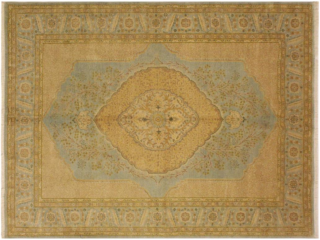 Turkish Knotted Istanbul George Blue/Gold Wool Rug - 5'8'' x 7'4''