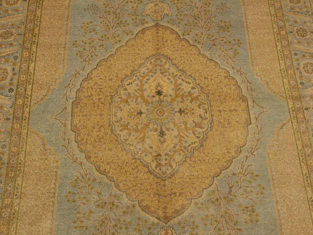 Designed with a mesmerizing intricate traditional motif this glorious hand knotted rug is a masterpiece that will fill any space with sophistication and grace. An exhilarating color pallet with an elaborate design, this masterpiece features luxurious hand spun wool with all vegetable dyes to add comfort and style to your decor. The design, color and beautiful chromatic composition with a sheen in traditional and transitional designs, exude beauty, elegance and quality make this rug a masterpiece of its own.