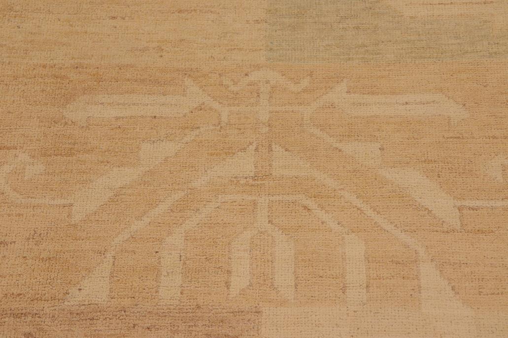 Enhance the ambiance of your home with this magnificent Persian-influenced Turkish hand-knotted rug made by skilled artisans capable of creating the most exceptional vegetable dyes and hand-spun wool. This exquisite handmade rug is a one-of-a-kind Peshawar Kafkaz, otherwise identified as Chobi, Chobi Peshawar, Oushak, or Ziegler rug. These handmade rugs are crafted in Pakistan utilizing superior-quality wool imported from Australia, New Zealand, and Korea in two types of weaves: the Persian weave and the Mori weave. This rug is meticulously crafted by hand using the finest natural vegetable dyes extracted from local plants. The artisans use a blend of hand-spun local and fine merino wool, resulting in a rug with a compelling texture, higher lanolin content, and longer staple. The artisans occasionally incorporate natural or artificial silk into the pile to enhance specific motifs. The finished product is an awe-inspiring flawless design execution and an understated palette that exudes elegance. Contemporary Peshawar rugs draw inspiration from antique Persian designs and feature modern design motifs with vibrant color tones. Hand-knotted with all-natural dyes, resulting in a unique abrash effect and subtle color variations in the pile. Peshawar rugs are known for their stunning and vibrant colors, which were achieved through a process inspired by antique methods. The rug's pile is meticulously trimmed to a moderate thickness and then stone-washed and sun-dried, resulting in a natural sheen and pleasing color tones. Transform the ambiance of your room into a luxurious haven with this gorgeous rug featuring a beautiful color palette. This stunning rug features an intricate oriental design that showcases royalty and seamlessly complements any decor. Its hand-knotted construction and natural fibers provide a soft and comfortable feel underfoot, making it the perfect addition to any room.