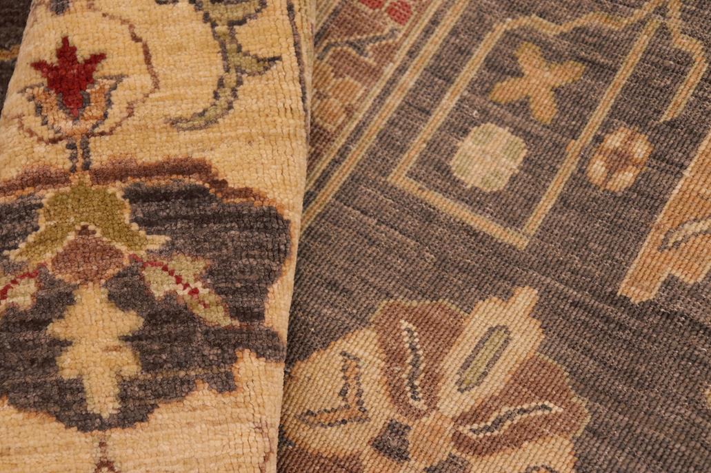 Enhance the ambiance of your home with this magnificent Persian-influenced Turkish hand-knotted rug made by skilled artisans capable of creating the most exceptional vegetable dyes and hand-spun wool. This exquisite handmade rug is a one-of-a-kind Peshawar Kafkaz, otherwise identified as Chobi, Chobi Peshawar, Oushak, or Ziegler rug. These handmade rugs are crafted in Pakistan utilizing superior-quality wool imported from Australia, New Zealand, and Korea in two types of weaves: the Persian weave and the Mori weave. This rug is meticulously crafted by hand using the finest natural vegetable dyes extracted from local plants. The artisans use a blend of hand-spun local and fine merino wool, resulting in a rug with a compelling texture, higher lanolin content, and longer staple. The artisans occasionally incorporate natural or artificial silk into the pile to enhance specific motifs. The finished product is an awe-inspiring flawless design execution and an understated palette that exudes elegance. Contemporary Peshawar rugs draw inspiration from antique Persian designs and feature modern design motifs with vibrant color tones. Hand-knotted with all-natural dyes, resulting in a unique abrash effect and subtle color variations in the pile. Peshawar rugs are known for their stunning and vibrant colors, which were achieved through a process inspired by antique methods. The rug's pile is meticulously trimmed to a moderate thickness and then stone-washed and sun-dried, resulting in a natural sheen and pleasing color tones. Transform the ambiance of your room into a luxurious haven with this gorgeous rug featuring a beautiful color palette. This stunning rug features an intricate oriental design that showcases royalty and seamlessly complements any decor. Its hand-knotted construction and natural fibers provide a soft and comfortable feel underfoot, making it the perfect addition to any room.