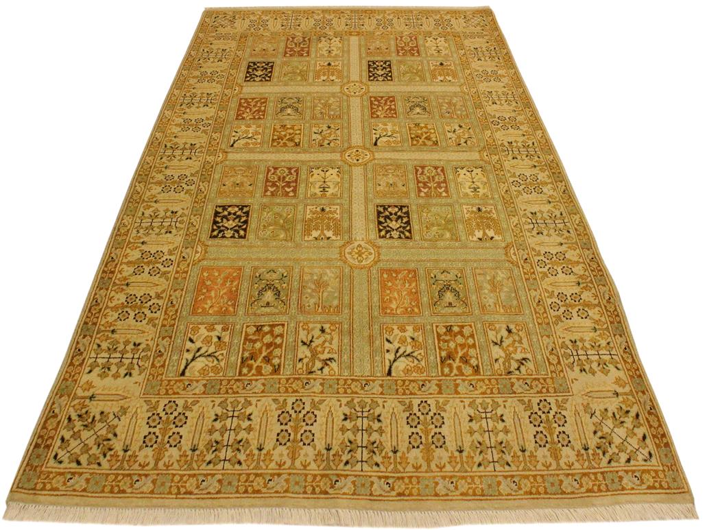 Designed with a mesmerizing intricate traditional motif this glorious hand knotted rug is a masterpiece that will fill any space with sophistication and grace. An exhilarating color pallet with an elaborate design, this masterpiece features luxurious hand spun wool with all vegetable dyes to add comfort and style to your decor. The design, color and beautiful chromatic composition with a sheen in traditional and transitional designs, exude beauty, elegance and quality make this rug a masterpiece of its own.