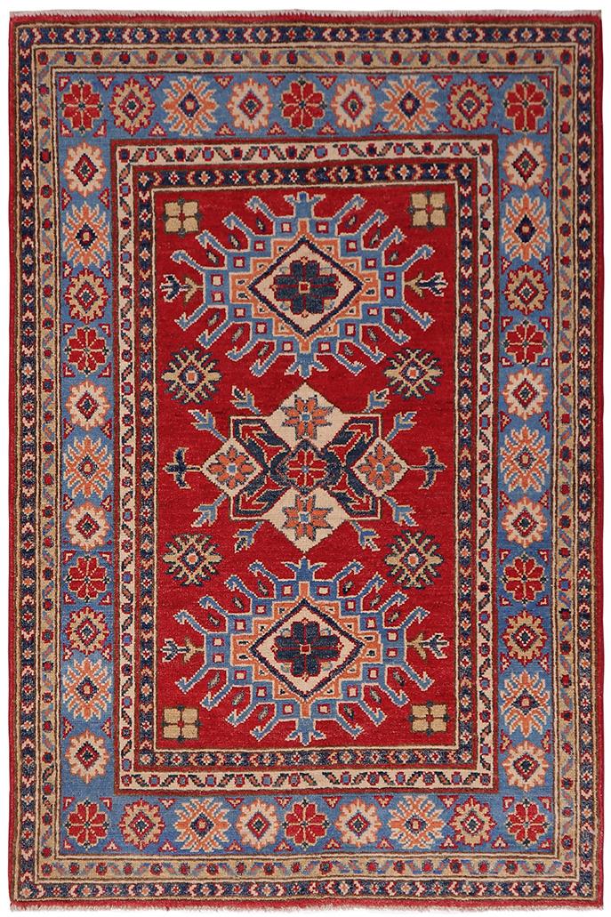 Rustic Kazak Tucker Red/Light Blue Wool Rug - 3'3'' x 4'9''