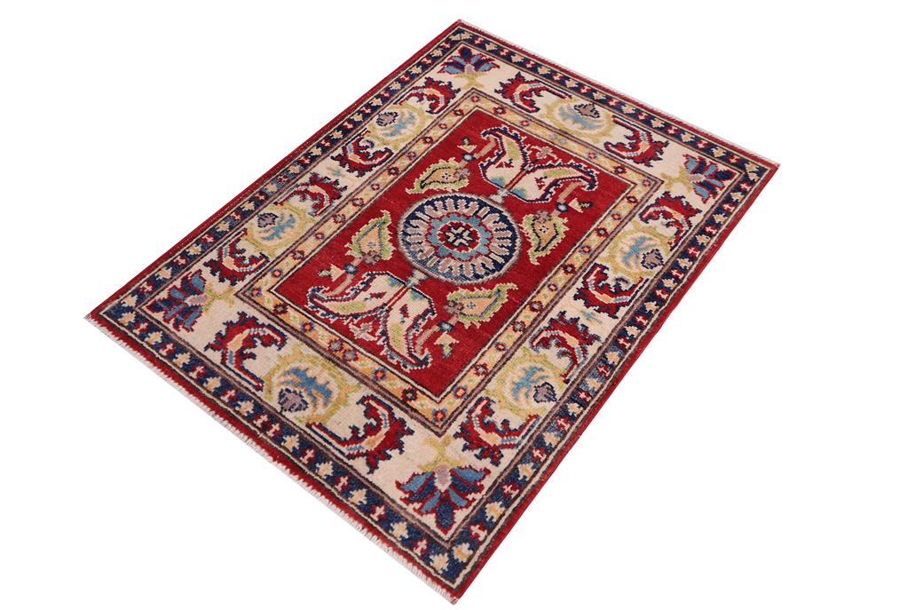 Southwestern Kazak Rustic Timothy Red/Beige Wool Rug - 2'0'' x 3'0''