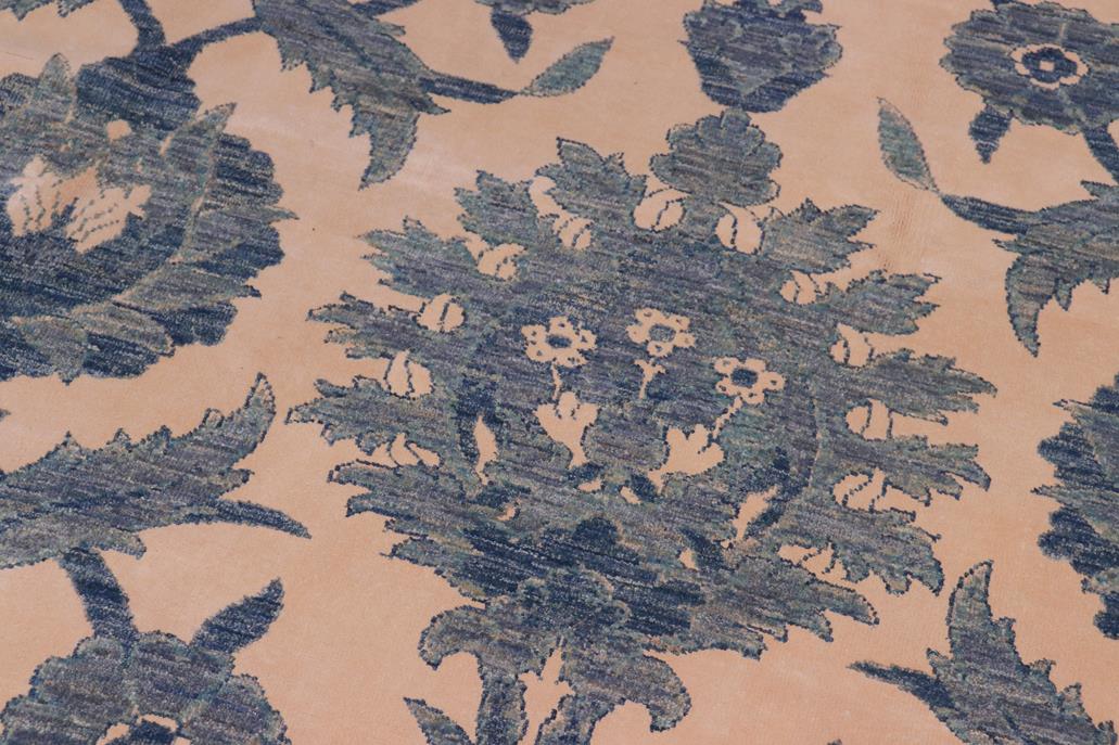 Enhance the ambiance of your home with this magnificent Persian-influenced Turkish hand-knotted rug made by skilled artisans capable of creating the most exceptional vegetable dyes and hand-spun wool. This exquisite handmade rug is a one-of-a-kind Peshawar Kafkaz, otherwise identified as Chobi, Chobi Peshawar, Oushak, or Ziegler rug. These handmade rugs are crafted in Pakistan utilizing superior-quality wool imported from Australia, New Zealand, and Korea in two types of weaves: the Persian weave and the Mori weave. This rug is meticulously crafted by hand using the finest natural vegetable dyes extracted from local plants. The artisans use a blend of hand-spun local and fine merino wool, resulting in a rug with a compelling texture, higher lanolin content, and longer staple. The artisans occasionally incorporate natural or artificial silk into the pile to enhance specific motifs. The finished product is an awe-inspiring flawless design execution and an understated palette that exudes elegance. Contemporary Peshawar rugs draw inspiration from antique Persian designs and feature modern design motifs with vibrant color tones. Hand-knotted with all-natural dyes, resulting in a unique abrash effect and subtle color variations in the pile. Peshawar rugs are known for their stunning and vibrant colors, which were achieved through a process inspired by antique methods. The rug's pile is meticulously trimmed to a moderate thickness and then stone-washed and sun-dried, resulting in a natural sheen and pleasing color tones. Transform the ambiance of your room into a luxurious haven with this gorgeous rug featuring a beautiful color palette. This stunning rug features an intricate oriental design that showcases royalty and seamlessly complements any decor. Its hand-knotted construction and natural fibers provide a soft and comfortable feel underfoot, making it the perfect addition to any room.