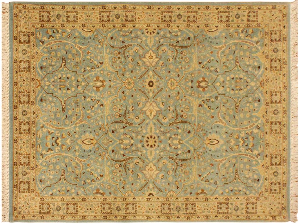 Turkish Knotted Istanbul Jean Blue/Ivory Wool Rug - 4'2'' x 6'2''