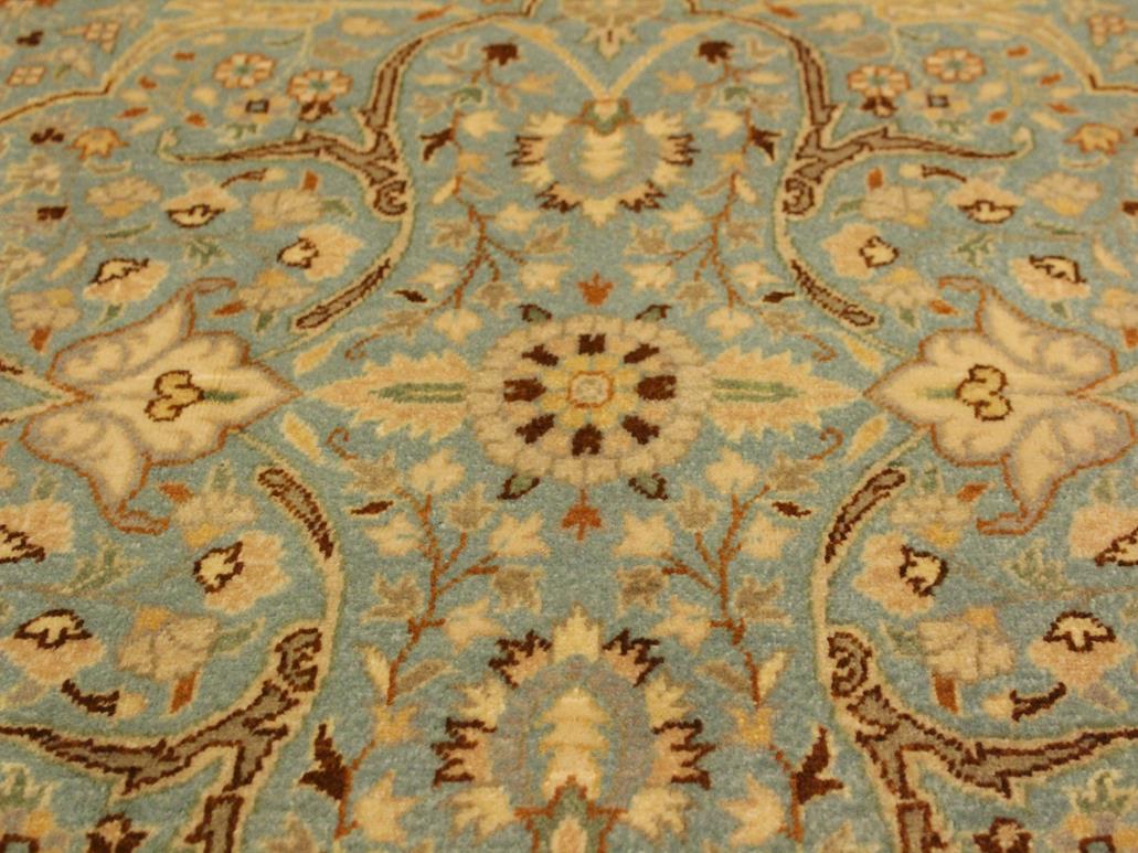 Designed with a mesmerizing intricate traditional motif this glorious hand knotted rug is a masterpiece that will fill any space with sophistication and grace. An exhilarating color pallet with an elaborate design, this masterpiece features luxurious hand spun wool with all vegetable dyes to add comfort and style to your decor. The design, color and beautiful chromatic composition with a sheen in traditional and transitional designs, exude beauty, elegance and quality make this rug a masterpiece of its own.