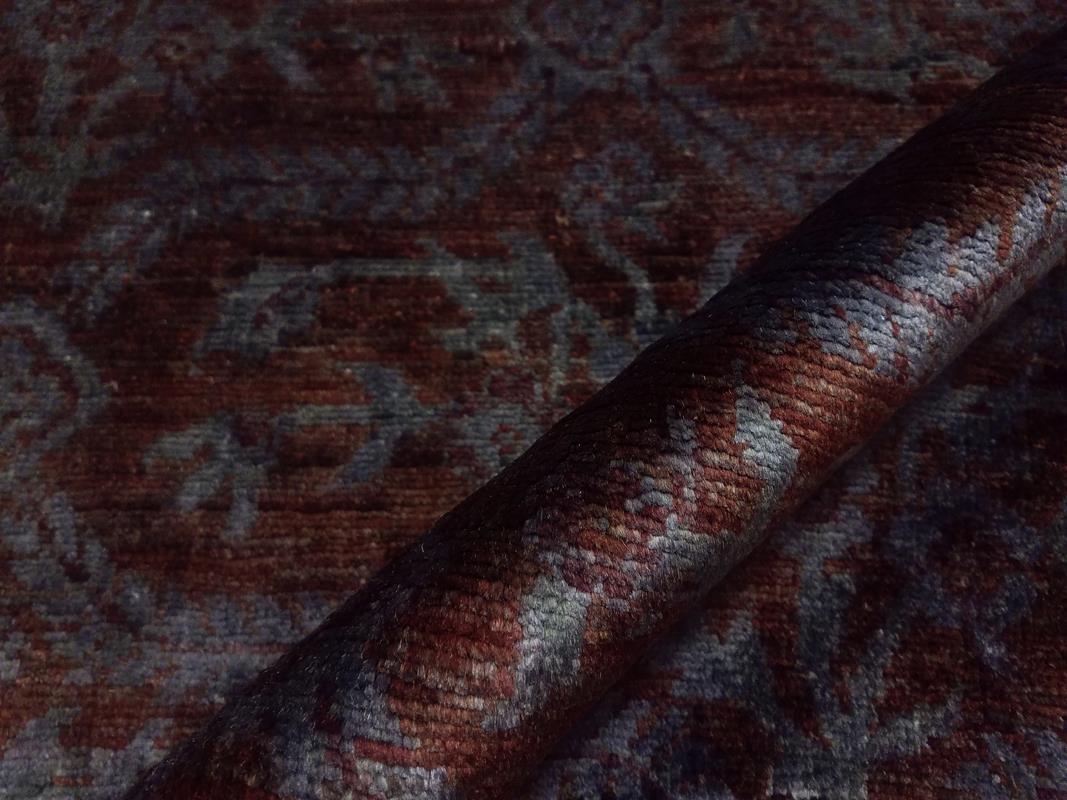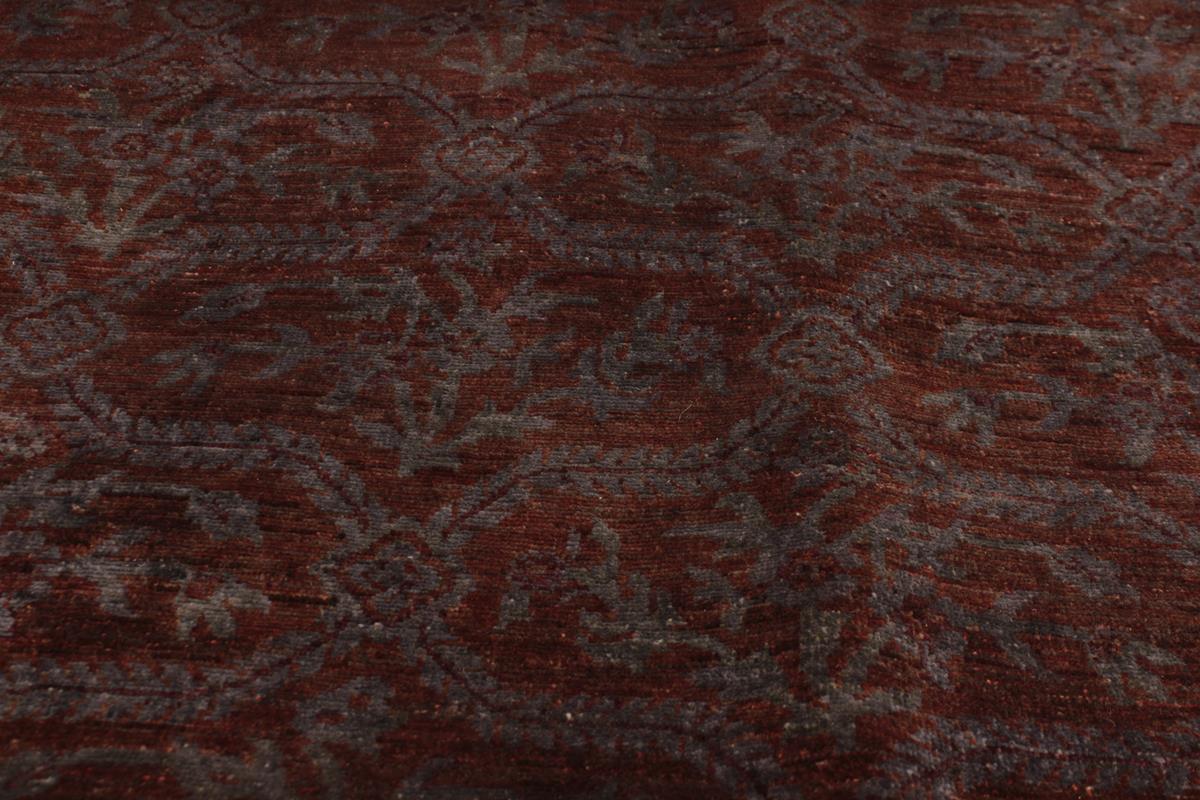 Masterfully hand-knotted by skilled artists, this over dyed hand knotted rug highlights careful attention to detail and color to create a remarkable chromatic composition. Each rug is hand knotted using centuries old techniques and mellowed down by the natural energy of the sun. While retaining the original design each rug is given a unique artistic composition by over dying and washing each rug in remarkable color palette to produce a bolder, brighter, modern and saturated look. The modern inspired look with rich, luscious detailing, vibrant feel and a show-stopping palette with saturated colors provides an unexpected decor twist. The historic and timeless appearance of this collection offers an exquisite quality of one-of-a-kind artistic rugs.