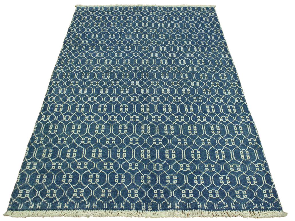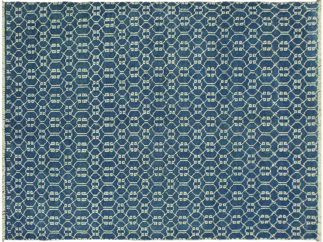 Modern Elara Blue/Ivory Wool&Silk Rug - 4'2'' x 6'2''