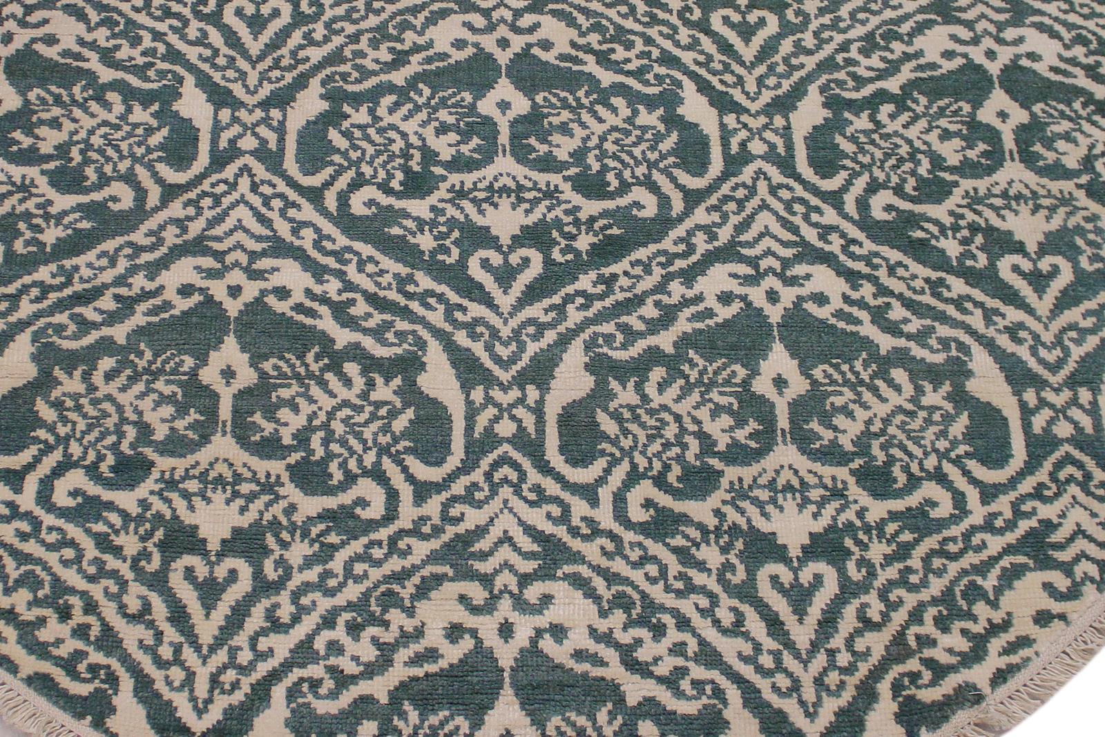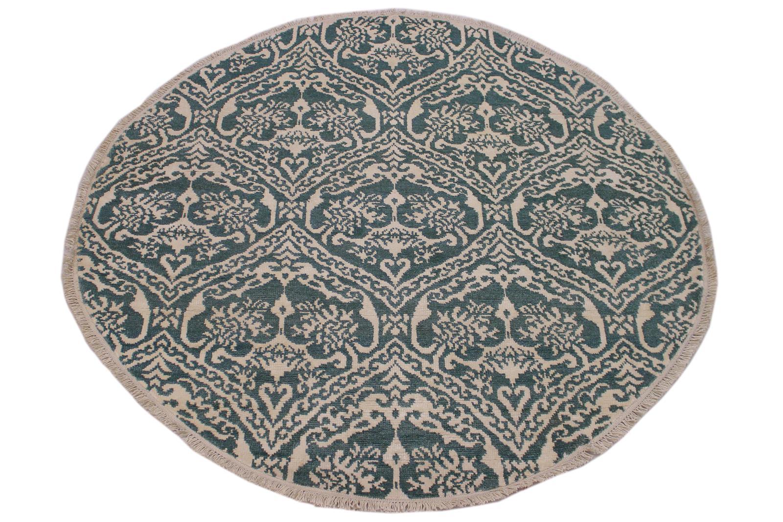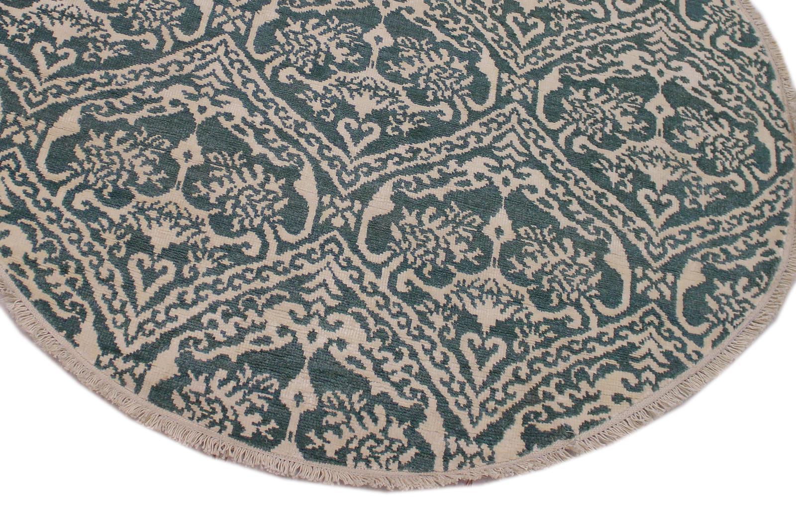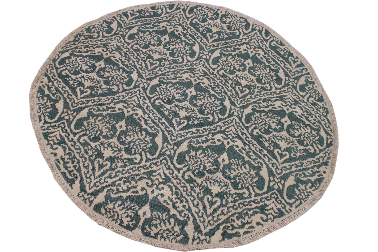 Modern Abstract Ileana Green/Ivory Wool & Silk Round -6'1 x 6'1