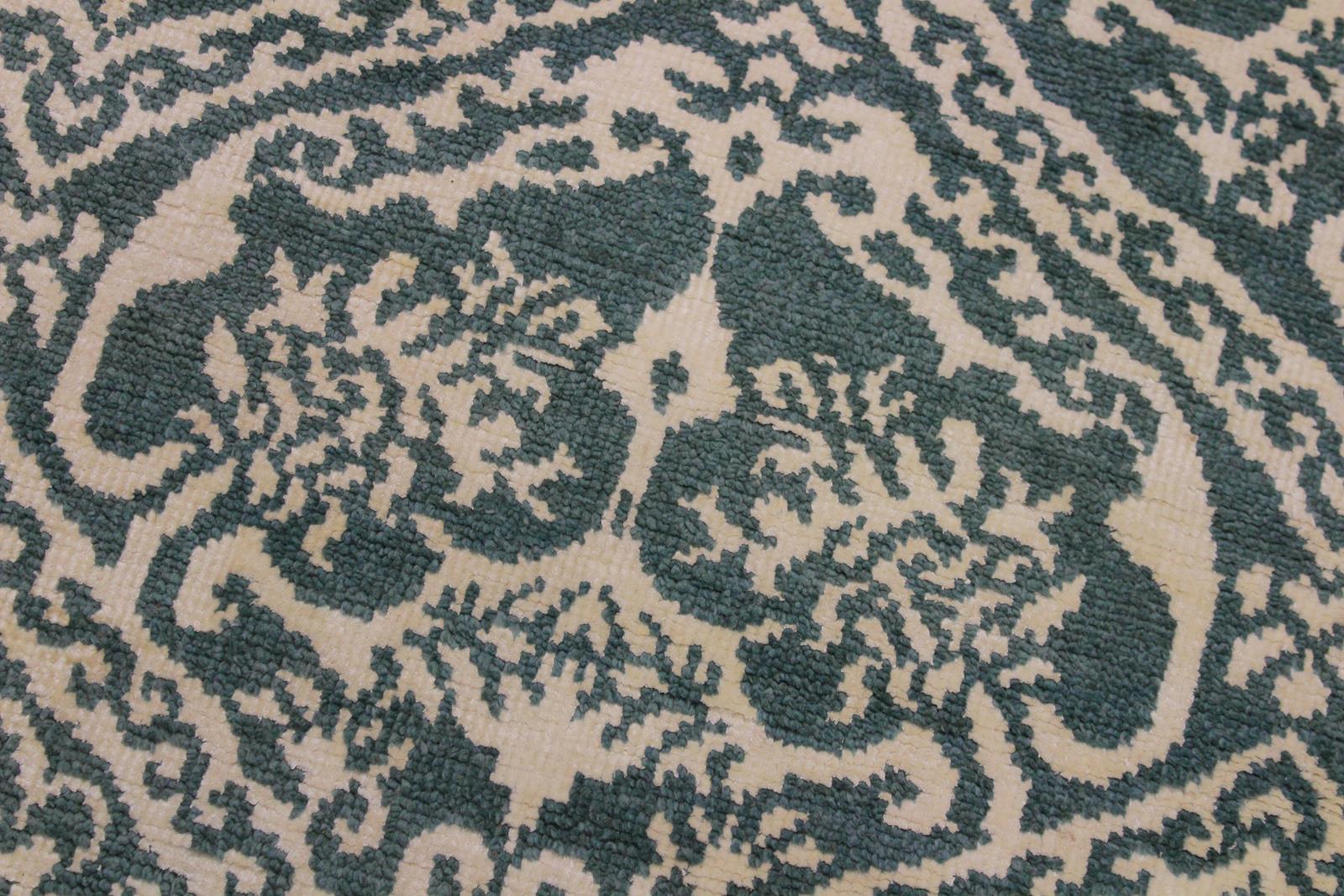 Modern contemporary hand knotted rug made with luxurious wool is a refreshing addition to your décor. Mesmerizing Intricacy and delicate design showcases a brilliant assortment of colors with a soothing sheen making this rug a breathtaking addition to any décor. Breathtaking intricate design with mesmerizing Intricacy with pleasing color palette will enumerate another dimension to your décor.