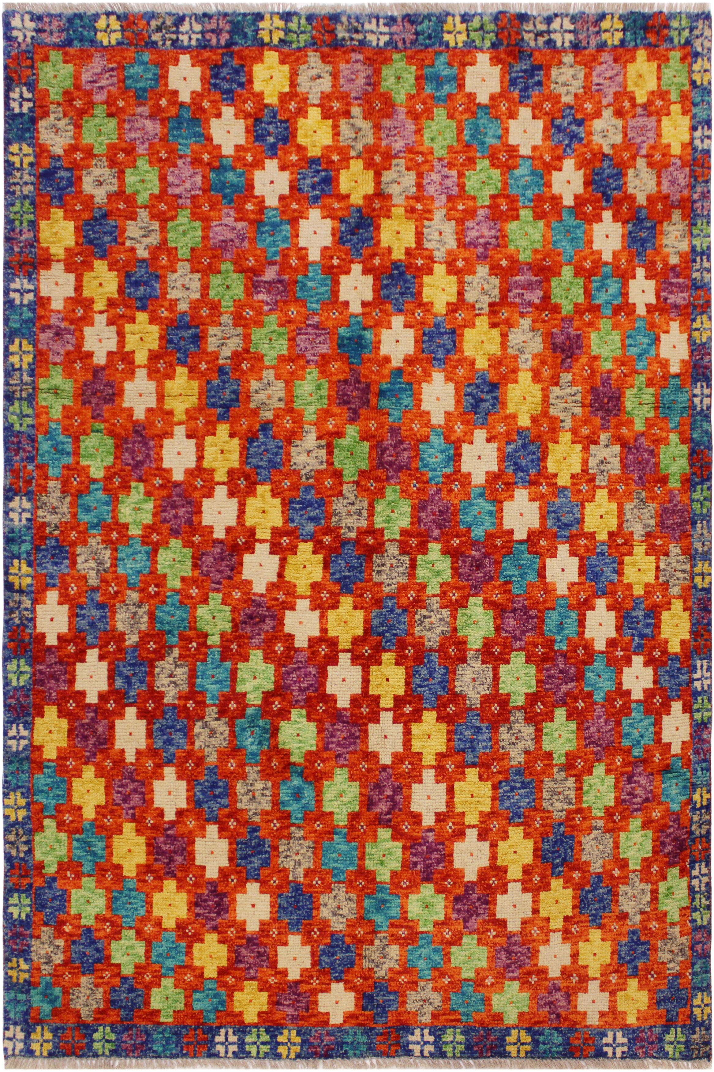 Shabby Chic Balochi Alberta Orange/Blue Wool Rug - 4'10'' x 6'7''