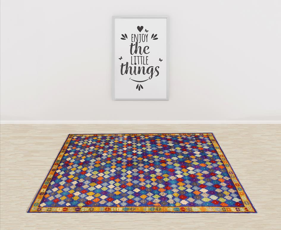 Contemporary Balochi Albertin Blue/Gold Wool Rug - 4'10'' x 6'8''
