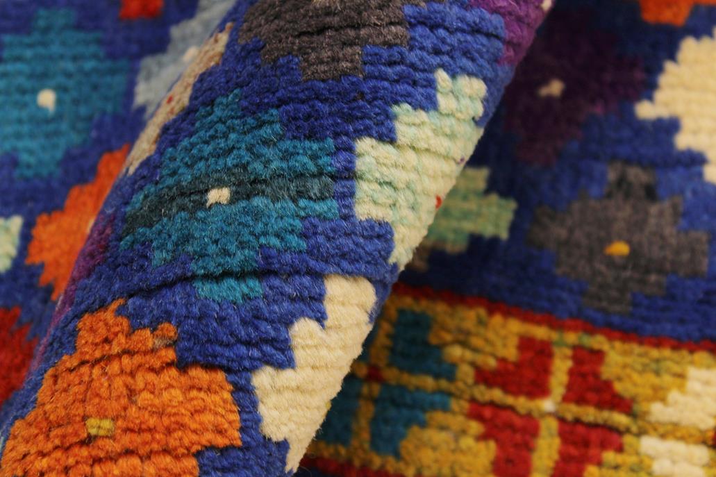 This stunning hand-knotted Afghan Balouchi rug is a captivating addition to any decor. Crafted by skilled artisans, it showcases exquisite colors and intricate designs. With a blend of traditional, transitional, and geometric patterns, this one-of-a-kind rug features a plush pile made from high-quality wool, providing a luxurious texture and appearance. It adds softness, warmth, and comfort to any room, making it a perfect choice for enhancing your space.