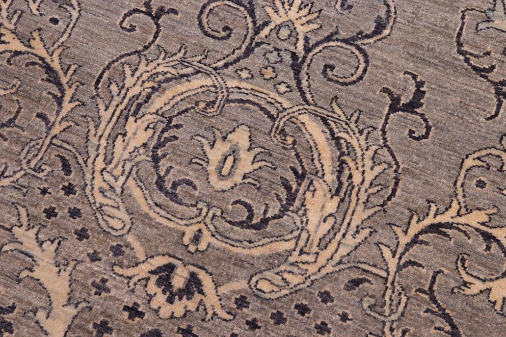 Enhance the ambiance of your home with this magnificent Persian-influenced Turkish hand-knotted rug made by skilled artisans capable of creating the most exceptional vegetable dyes and hand-spun wool. This exquisite handmade rug is a one-of-a-kind Peshawar Kafkaz, otherwise identified as Chobi, Chobi Peshawar, Oushak, or Ziegler rug. These handmade rugs are crafted in Pakistan utilizing superior-quality wool imported from Australia, New Zealand, and Korea in two types of weaves: the Persian weave and the Mori weave. This rug is meticulously crafted by hand using the finest natural vegetable dyes extracted from local plants. The artisans use a blend of hand-spun local and fine merino wool, resulting in a rug with a compelling texture, higher lanolin content, and longer staple. The artisans occasionally incorporate natural or artificial silk into the pile to enhance specific motifs. The finished product is an awe-inspiring flawless design execution and an understated palette that exudes elegance. Contemporary Peshawar rugs draw inspiration from antique Persian designs and feature modern design motifs with vibrant color tones. Hand-knotted with all-natural dyes, resulting in a unique abrash effect and subtle color variations in the pile. Peshawar rugs are known for their stunning and vibrant colors, which were achieved through a process inspired by antique methods. The rug's pile is meticulously trimmed to a moderate thickness and then stone-washed and sun-dried, resulting in a natural sheen and pleasing color tones. Transform the ambiance of your room into a luxurious haven with this gorgeous rug featuring a beautiful color palette. This stunning rug features an intricate oriental design that showcases royalty and seamlessly complements any decor. Its hand-knotted construction and natural fibers provide a soft and comfortable feel underfoot, making it the perfect addition to any room.