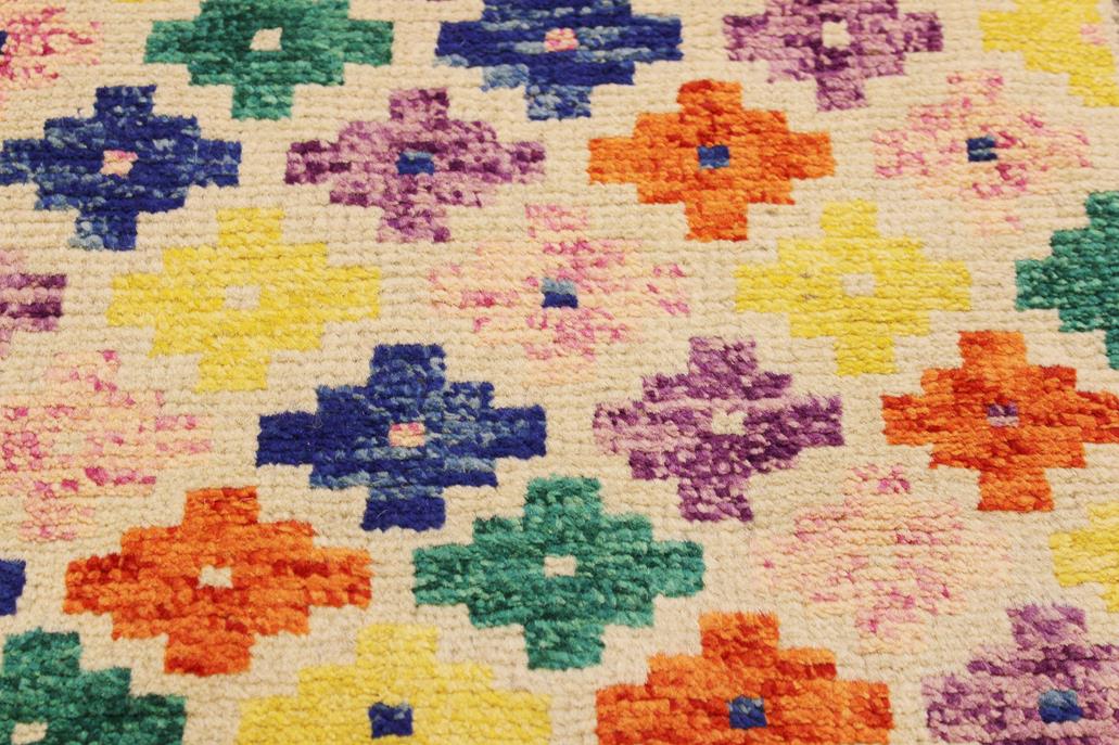 This stunning hand-knotted Afghan Balouchi rug is a captivating addition to any decor. Crafted by skilled artisans, it showcases exquisite colors and intricate designs. With a blend of traditional, transitional, and geometric patterns, this one-of-a-kind rug features a plush pile made from high-quality wool, providing a luxurious texture and appearance. It adds softness, warmth, and comfort to any room, making it a perfect choice for enhancing your space.