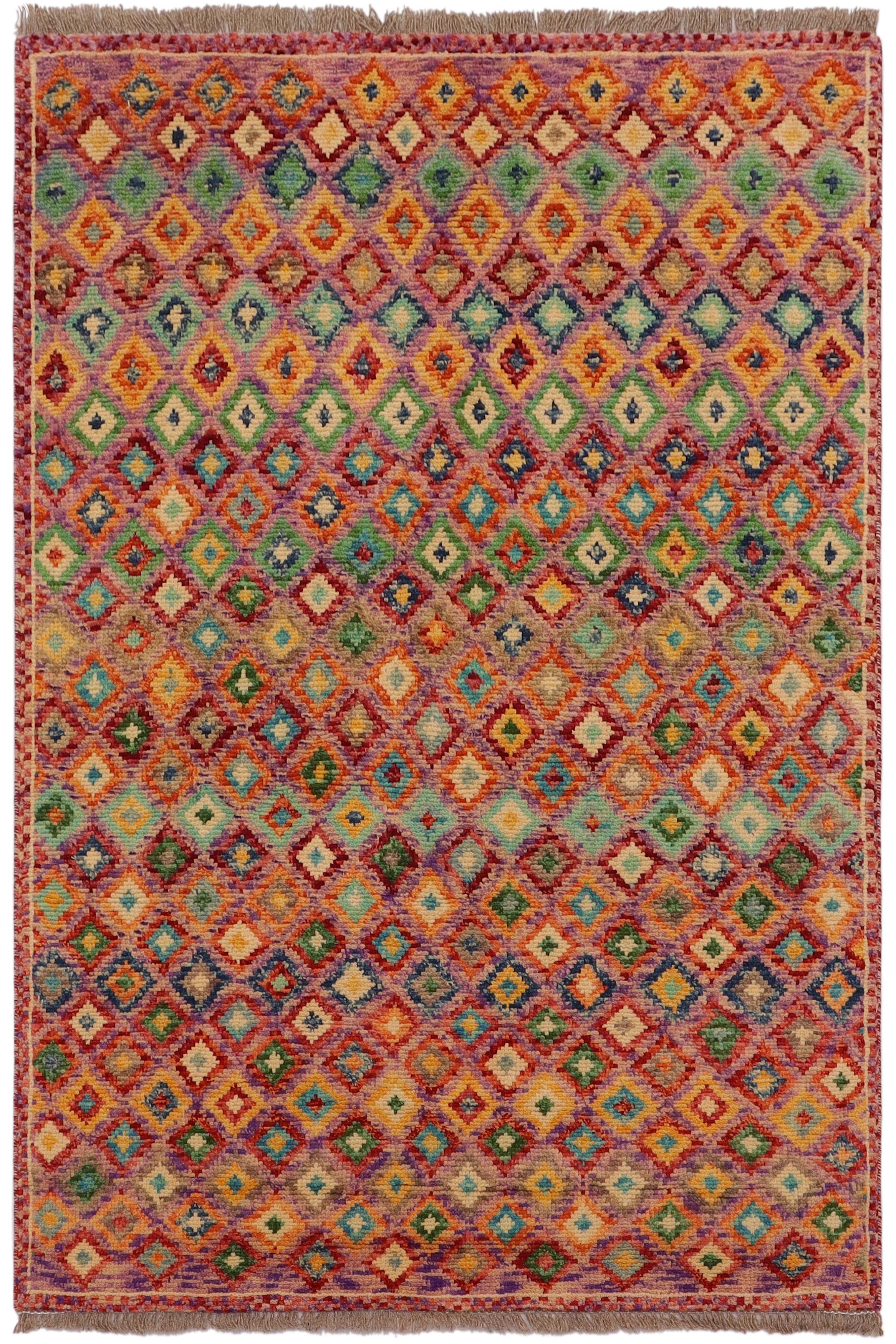 Contemporary Balochi Tiana Purple/Rust Wool Rug - 3'5'' x 4'11''