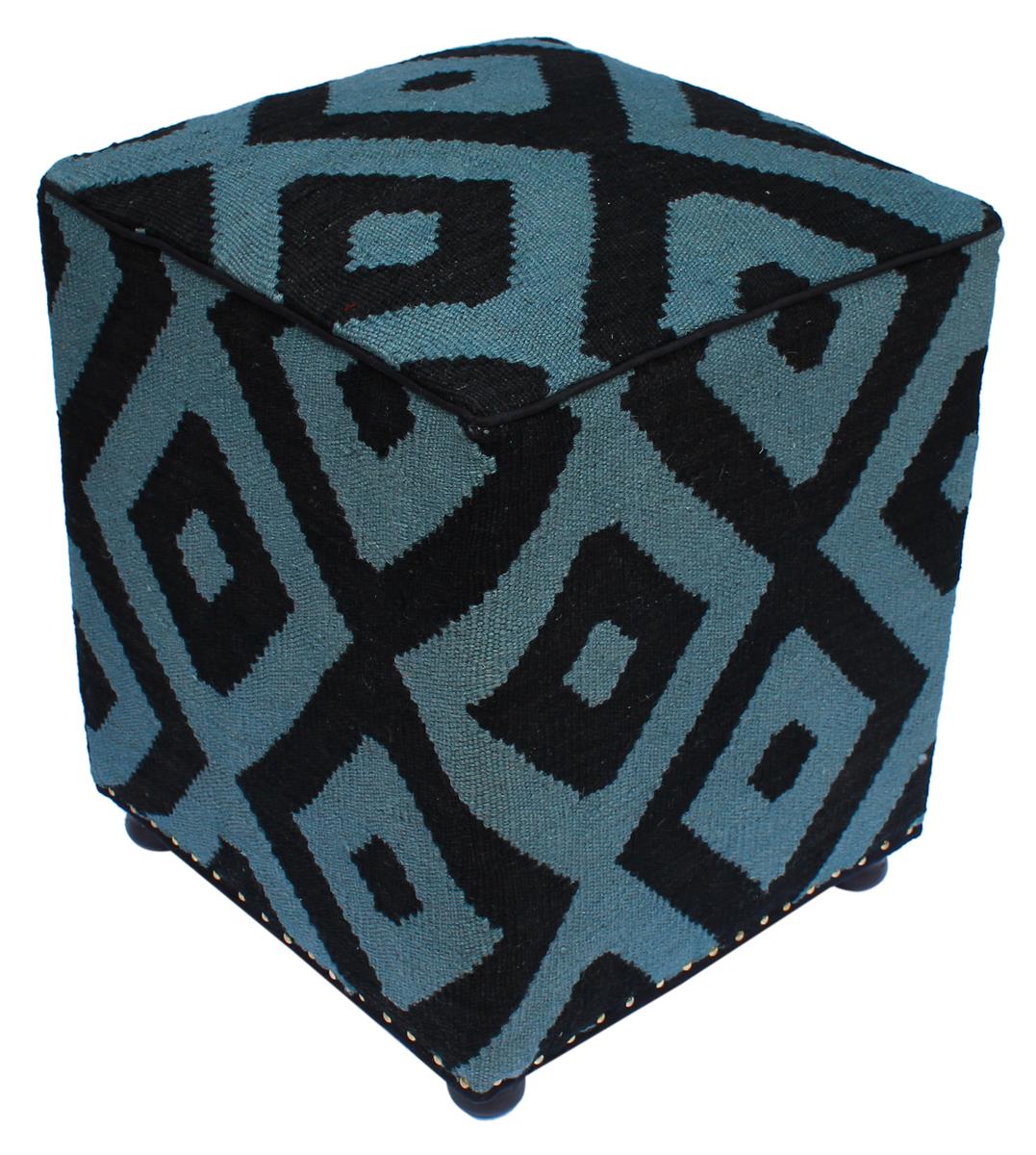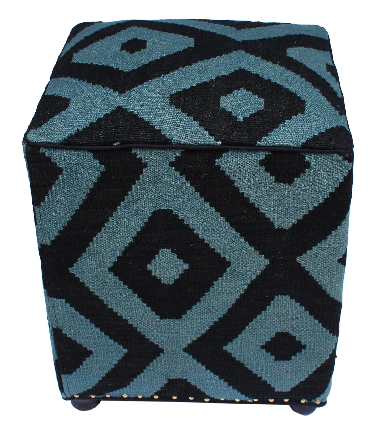 Tribal Schwartz Handmade Kilim Upholstered Ottoman
