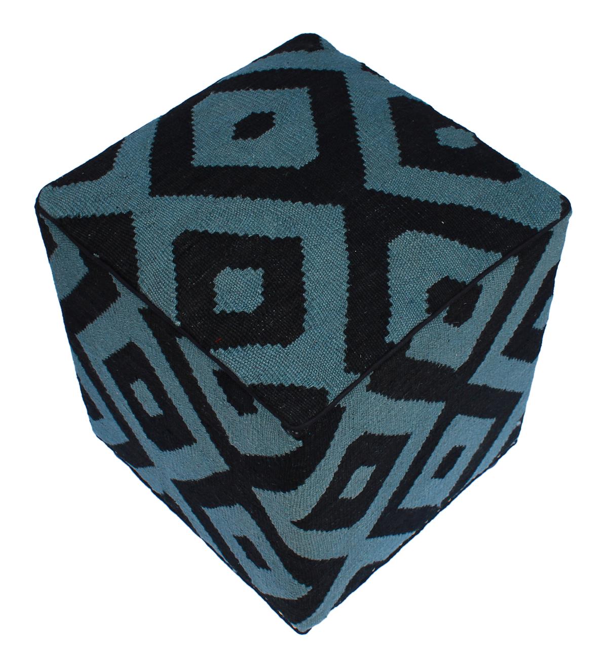Chic handmade ottoman crafted using wood and upholstered using hand-woven kilim wool rug is a multi-purpose fashion pouf which will add dimension, color and style to your decor. Inspired by geometric motifs in any array of effervescent color pallet grounds any space with elegance and sophistication.