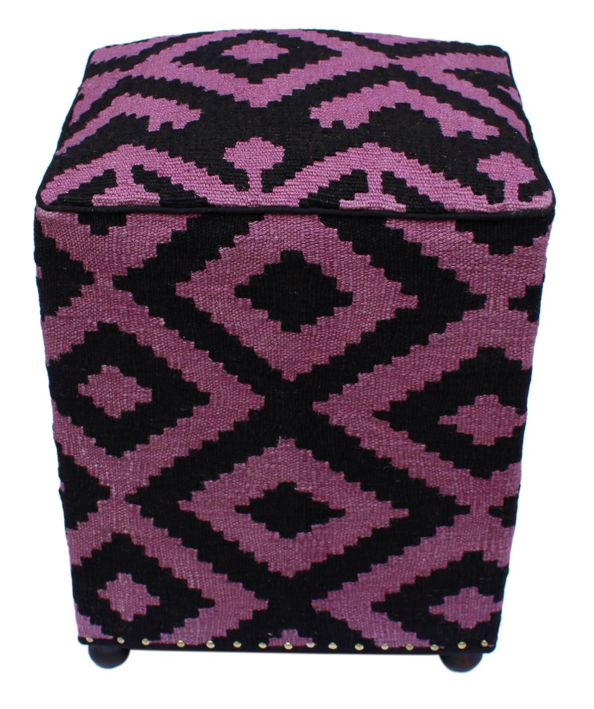 Boho Chic Shaver Handmade Kilim Upholstered Ottoman