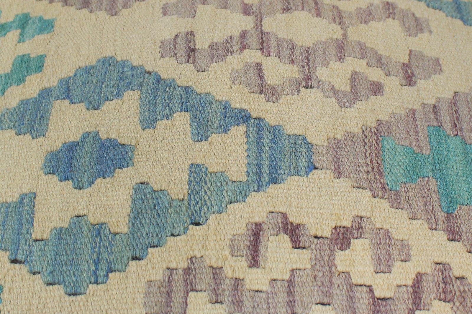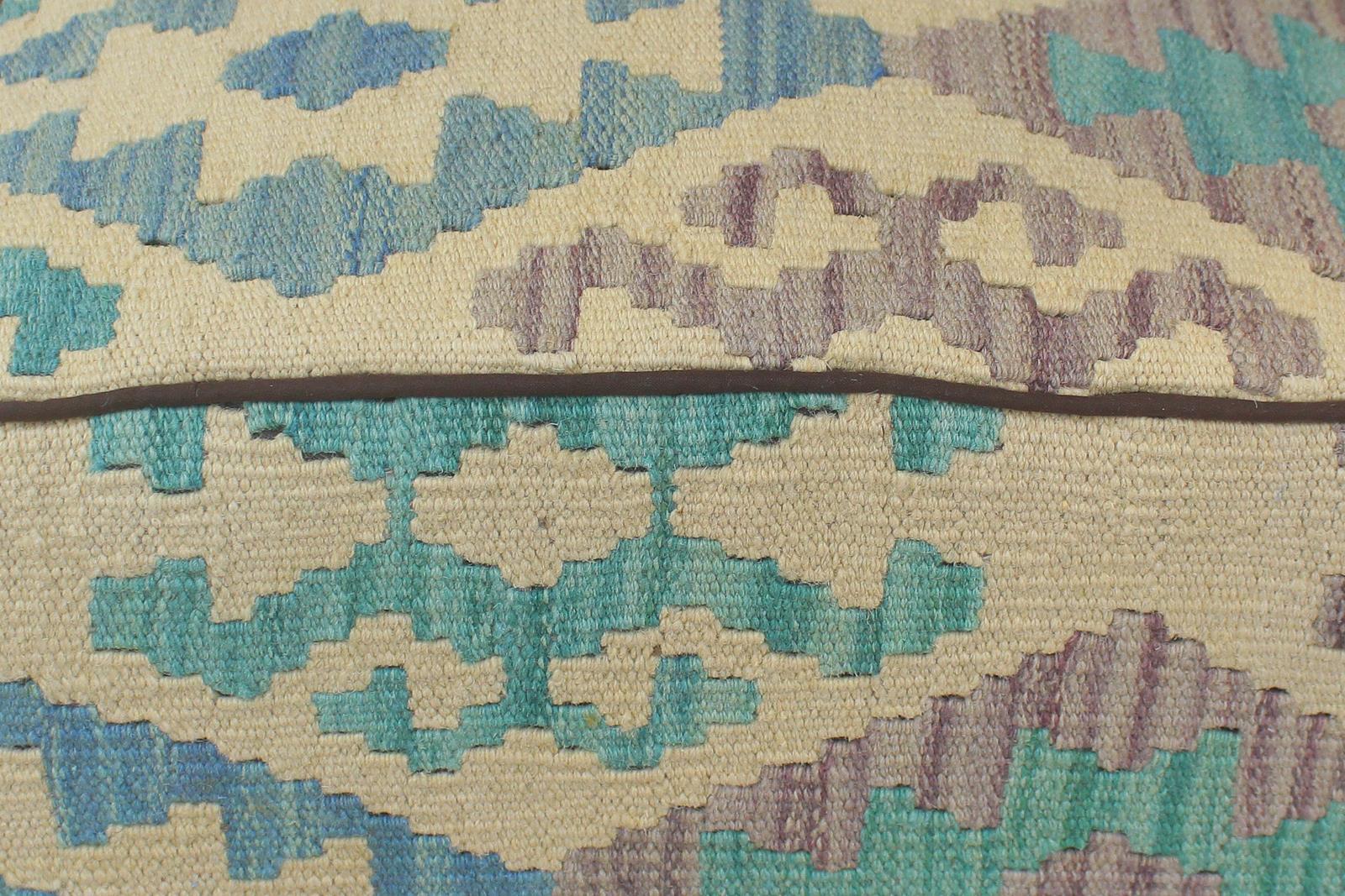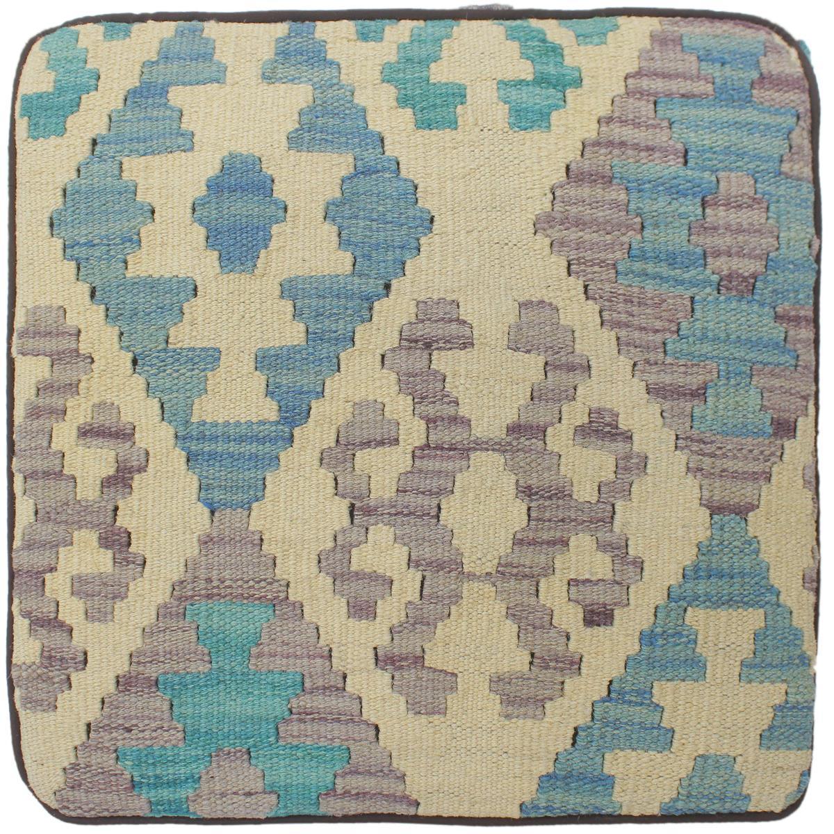Chic handmade ottoman crafted using wood and upholstered using hand-woven kilim wool rug is a multi-purpose fashion pouf which will add dimension, color and style to your decor. Inspired by geometric motifs in any array of effervescent color pallet grounds any space with elegance and sophistication.