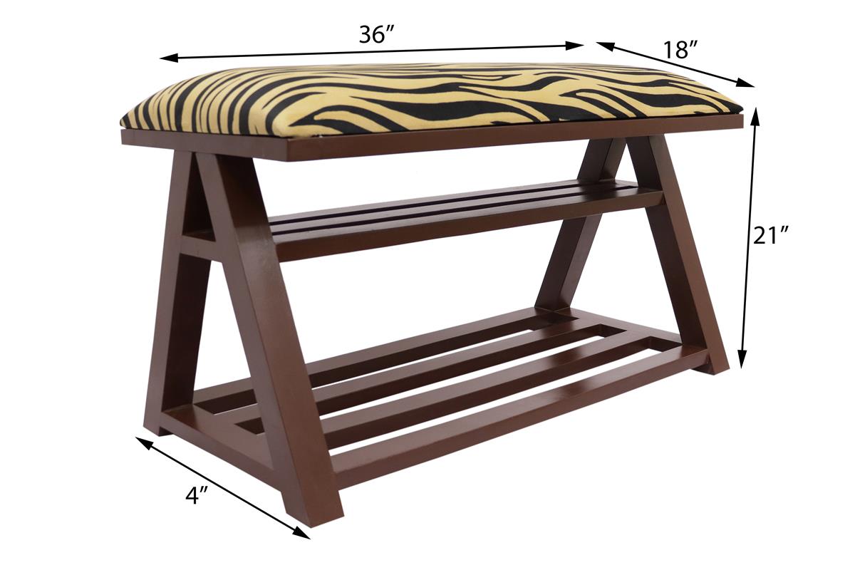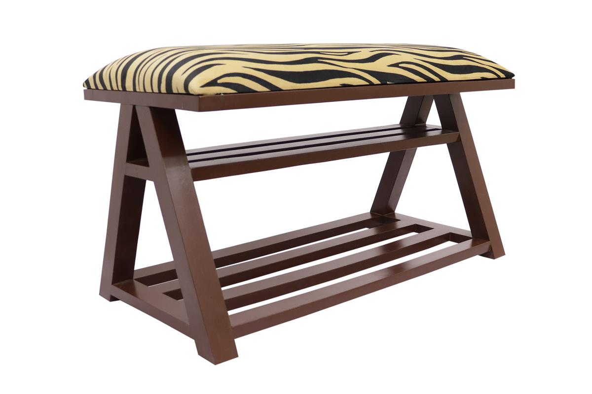 Retro Zebra Print Caskey Italian Velvet upholstered Handmade wood Storage Bench