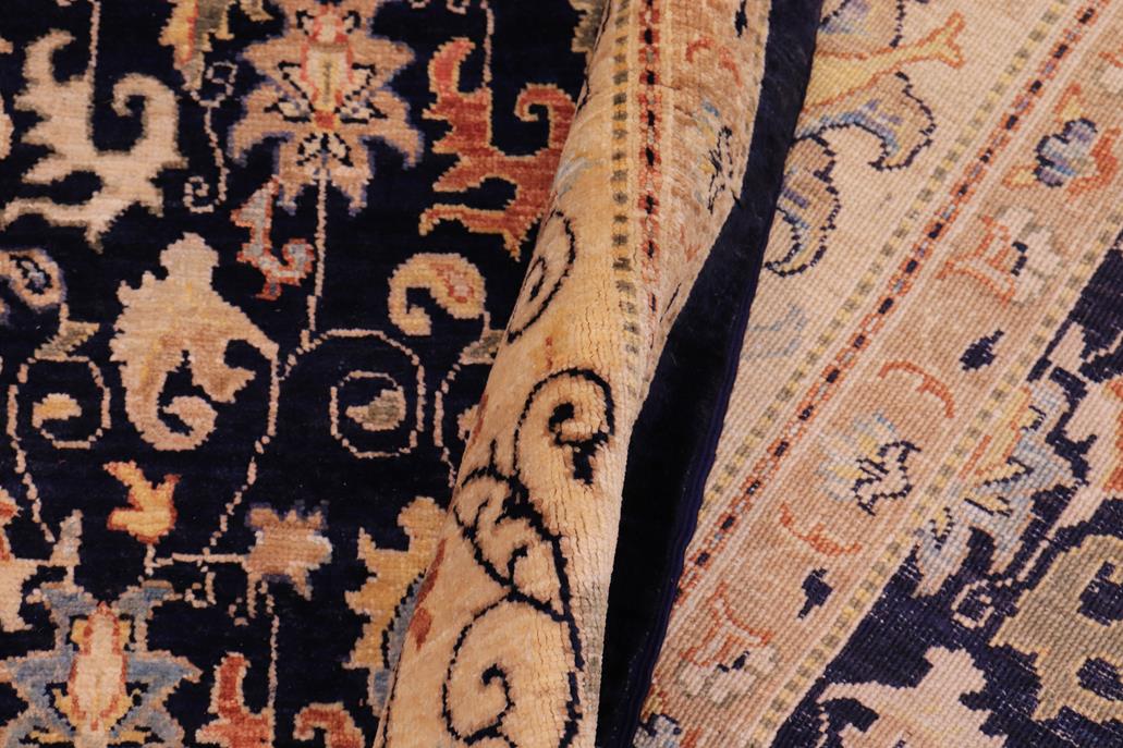 Enhance the ambiance of your home with this magnificent Persian-influenced Turkish hand-knotted rug made by skilled artisans capable of creating the most exceptional vegetable dyes and hand-spun wool. This exquisite handmade rug is a one-of-a-kind Peshawar Kafkaz, otherwise identified as Chobi, Chobi Peshawar, Oushak, or Ziegler rug. These handmade rugs are crafted in Pakistan utilizing superior-quality wool imported from Australia, New Zealand, and Korea in two types of weaves: the Persian weave and the Mori weave. This rug is meticulously crafted by hand using the finest natural vegetable dyes extracted from local plants. The artisans use a blend of hand-spun local and fine merino wool, resulting in a rug with a compelling texture, higher lanolin content, and longer staple. The artisans occasionally incorporate natural or artificial silk into the pile to enhance specific motifs. The finished product is an awe-inspiring flawless design execution and an understated palette that exudes elegance. Contemporary Peshawar rugs draw inspiration from antique Persian designs and feature modern design motifs with vibrant color tones. Hand-knotted with all-natural dyes, resulting in a unique abrash effect and subtle color variations in the pile. Peshawar rugs are known for their stunning and vibrant colors, which were achieved through a process inspired by antique methods. The rug's pile is meticulously trimmed to a moderate thickness and then stone-washed and sun-dried, resulting in a natural sheen and pleasing color tones. Transform the ambiance of your room into a luxurious haven with this gorgeous rug featuring a beautiful color palette. This stunning rug features an intricate oriental design that showcases royalty and seamlessly complements any decor. Its hand-knotted construction and natural fibers provide a soft and comfortable feel underfoot, making it the perfect addition to any room.