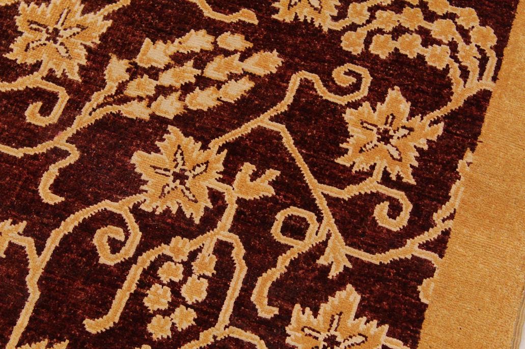 Enhance the ambiance of your home with this magnificent Persian-influenced Turkish hand-knotted rug made by skilled artisans capable of creating the most exceptional vegetable dyes and hand-spun wool. This exquisite handmade rug is a one-of-a-kind Peshawar Kafkaz, otherwise identified as Chobi, Chobi Peshawar, Oushak, or Ziegler rug. These handmade rugs are crafted in Pakistan utilizing superior-quality wool imported from Australia, New Zealand, and Korea in two types of weaves: the Persian weave and the Mori weave. This rug is meticulously crafted by hand using the finest natural vegetable dyes extracted from local plants. The artisans use a blend of hand-spun local and fine merino wool, resulting in a rug with a compelling texture, higher lanolin content, and longer staple. The artisans occasionally incorporate natural or artificial silk into the pile to enhance specific motifs. The finished product is an awe-inspiring flawless design execution and an understated palette that exudes elegance. Contemporary Peshawar rugs draw inspiration from antique Persian designs and feature modern design motifs with vibrant color tones. Hand-knotted with all-natural dyes, resulting in a unique abrash effect and subtle color variations in the pile. Peshawar rugs are known for their stunning and vibrant colors, which were achieved through a process inspired by antique methods. The rug's pile is meticulously trimmed to a moderate thickness and then stone-washed and sun-dried, resulting in a natural sheen and pleasing color tones. Transform the ambiance of your room into a luxurious haven with this gorgeous rug featuring a beautiful color palette. This stunning rug features an intricate oriental design that showcases royalty and seamlessly complements any decor. Its hand-knotted construction and natural fibers provide a soft and comfortable feel underfoot, making it the perfect addition to any room.