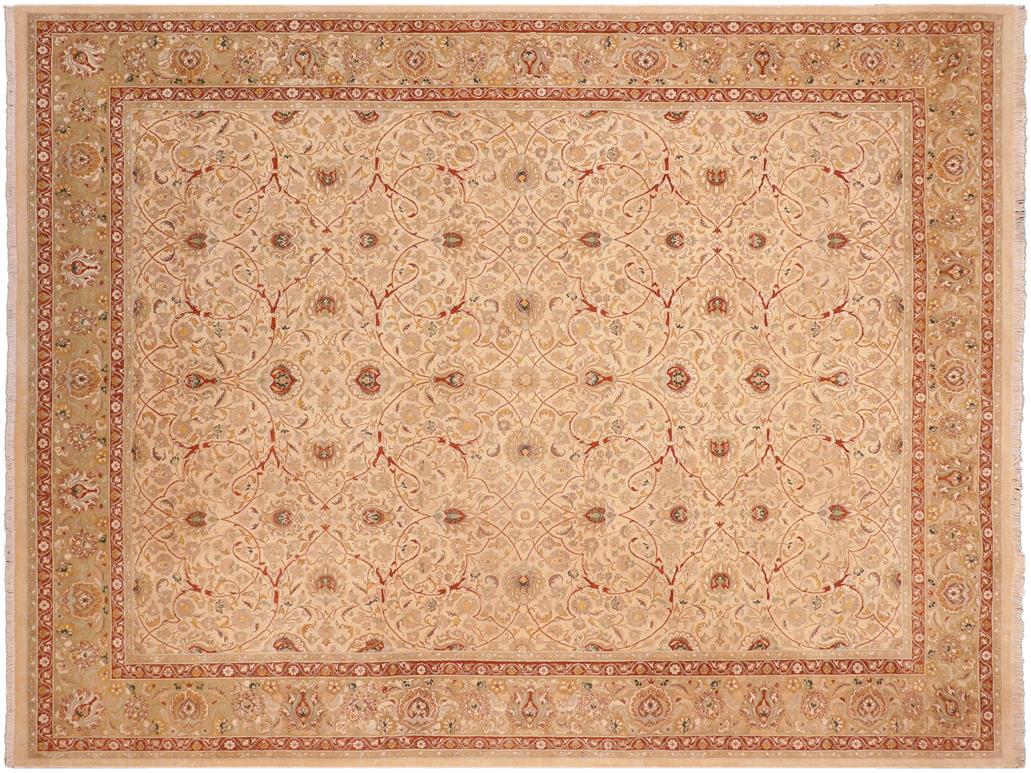 Antique Vegetable Dyed Taj Ivory/Green Wool Rug - 8'0'' x 10'2''