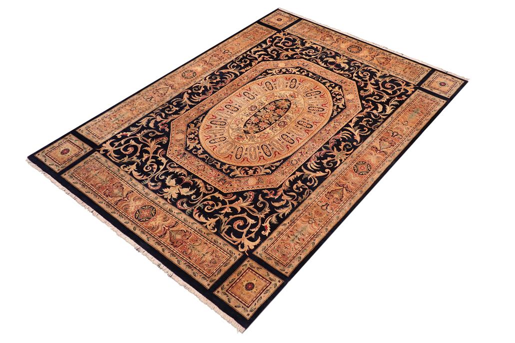 Designed with mesmerizing intricacy and gorgeous color palette, this hand-knotted masterpiece demonstrates the beauty and electrifying thrill of Pak Persian art. These meticulously hand-knotted Pak-Persian rug is made with pure wool and features breathtaking traditional, transitional, and tribal designs in bold luxurious color pallets. Known for their intricate designs these rugs are a reproduction of Persian rugs, made in Pakistan with unique Mughal designs. Made by master weavers using the same Persian texture, design and dying technique, we wanted to produce the most significant manifestation of Persian art, life, and culture. This rug is most famous for its exceptional quality, incredible designs, patterns, and vibrant rich color. Pak-Persian rugs made with Persian weave with high knot counts, which enables the high intricacy and detail found in the patterns are also referred to as "State of art", each color adds a rich beautiful detail in the artwork of this rug. The design, color, and beautiful chromatic composition with a vibrant sheen with intricate designs, exude beauty, elegance, and quality make this rug a masterpiece of its own.