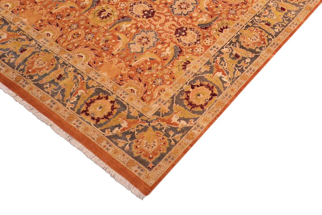 Traditional Agra Ramona Orange Gray Hand Knotted Area rugs 8X10