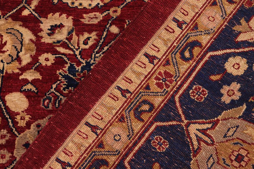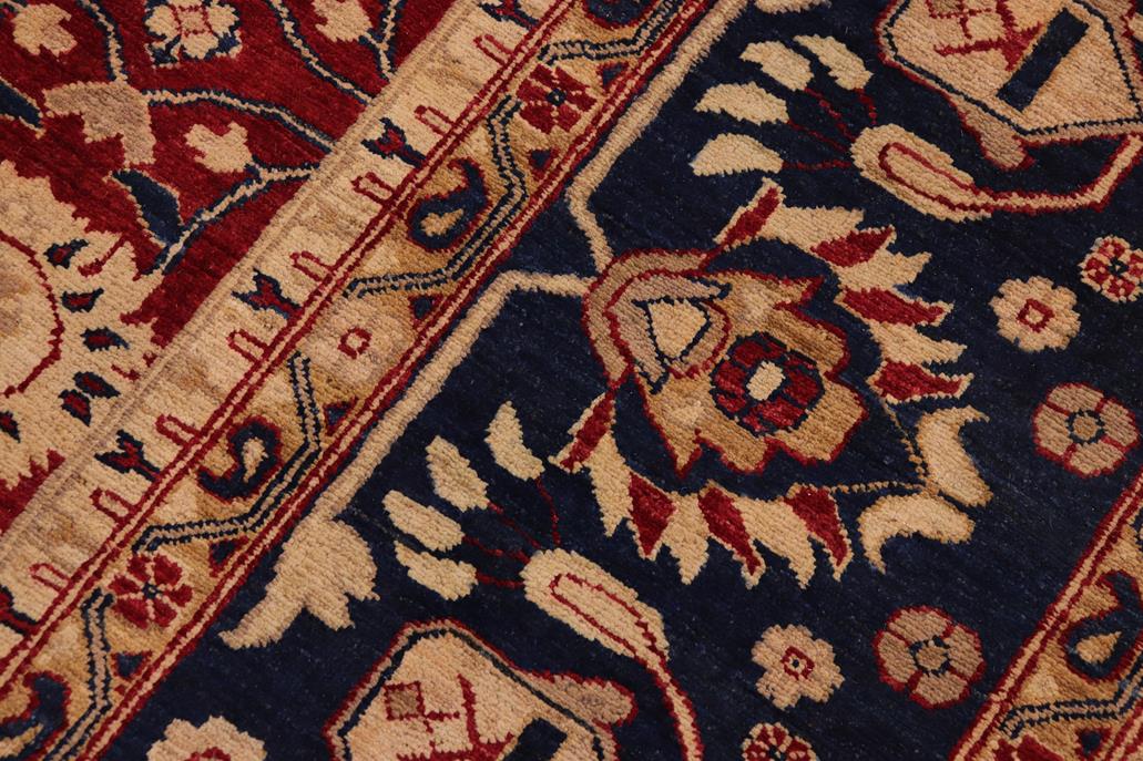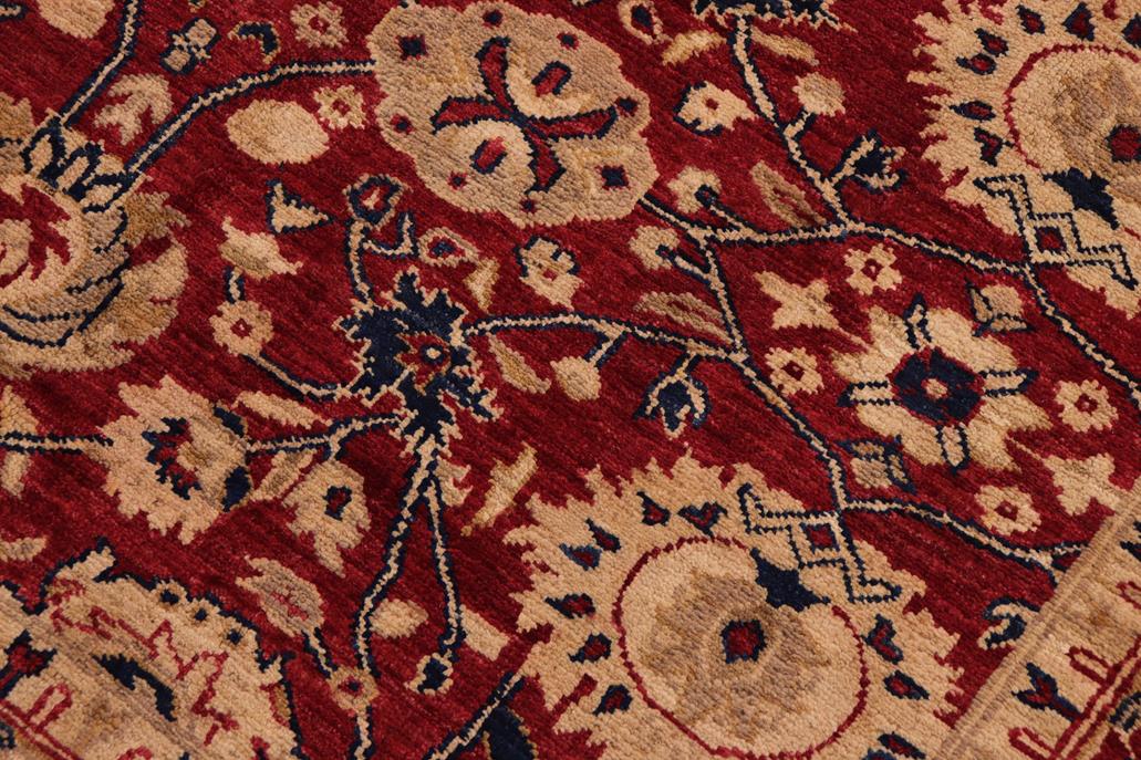 Enhance the ambiance of your home with this magnificent Persian-influenced Turkish hand-knotted rug made by skilled artisans capable of creating the most exceptional vegetable dyes and hand-spun wool. This exquisite handmade rug is a one-of-a-kind Peshawar Kafkaz, otherwise identified as Chobi, Chobi Peshawar, Oushak, or Ziegler rug. These handmade rugs are crafted in Pakistan utilizing superior-quality wool imported from Australia, New Zealand, and Korea in two types of weaves: the Persian weave and the Mori weave. This rug is meticulously crafted by hand using the finest natural vegetable dyes extracted from local plants. The artisans use a blend of hand-spun local and fine merino wool, resulting in a rug with a compelling texture, higher lanolin content, and longer staple. The artisans occasionally incorporate natural or artificial silk into the pile to enhance specific motifs. The finished product is an awe-inspiring flawless design execution and an understated palette that exudes elegance. Contemporary Peshawar rugs draw inspiration from antique Persian designs and feature modern design motifs with vibrant color tones. Hand-knotted with all-natural dyes, resulting in a unique abrash effect and subtle color variations in the pile. Peshawar rugs are known for their stunning and vibrant colors, which were achieved through a process inspired by antique methods. The rug's pile is meticulously trimmed to a moderate thickness and then stone-washed and sun-dried, resulting in a natural sheen and pleasing color tones. Transform the ambiance of your room into a luxurious haven with this gorgeous rug featuring a beautiful color palette. This stunning rug features an intricate oriental design that showcases royalty and seamlessly complements any decor. Its hand-knotted construction and natural fibers provide a soft and comfortable feel underfoot, making it the perfect addition to any room.