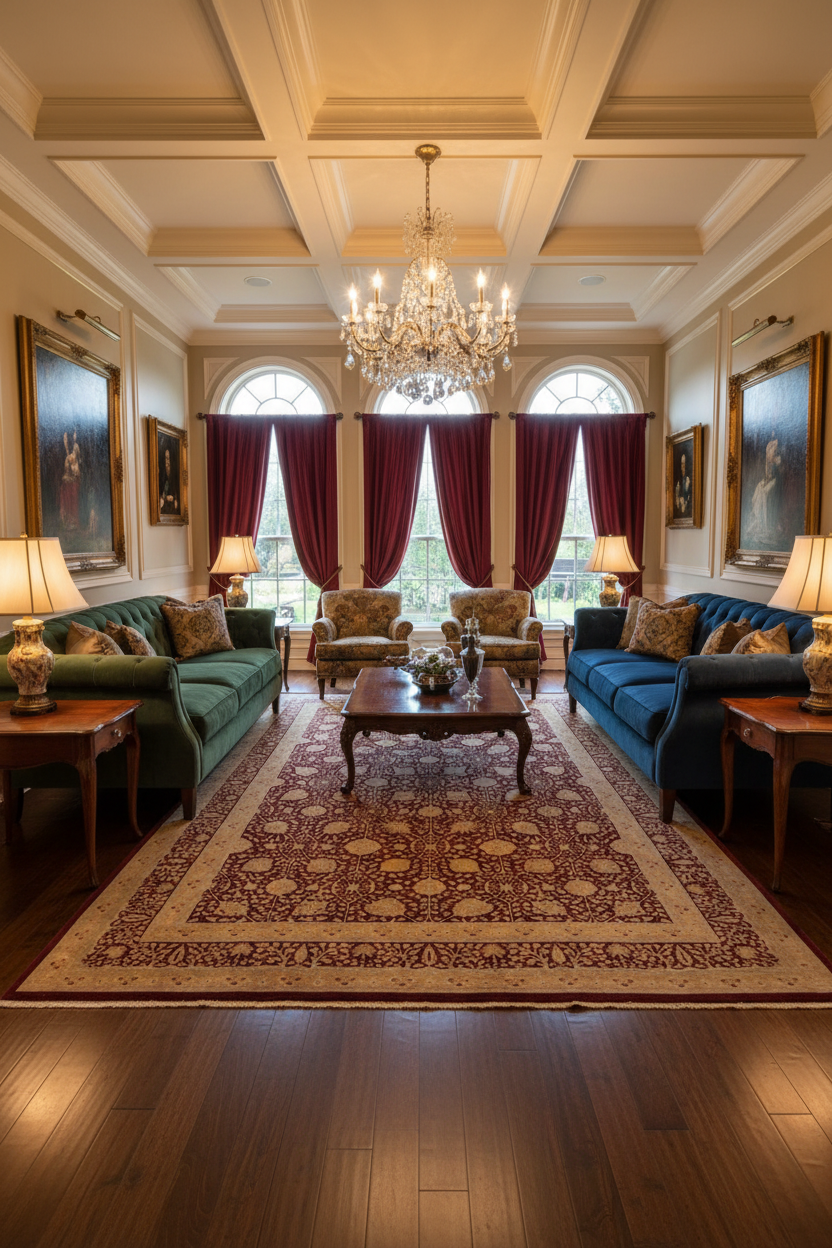 Each rug is meticulously hand-knotted by skilled artisans using 100% hand-spun wool and all-natural vegetable dyes, ensuring exceptional durability and heirloom quality, which blends perfectly with traditional and transitional interiors.