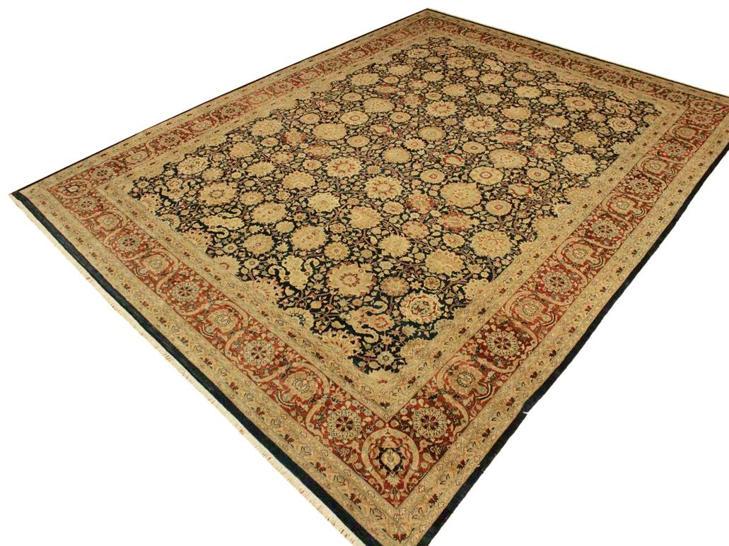 Antique Vegetable Dyed Tabriz Blue/Brown Wool Rug - 9'1'' x 12'2''