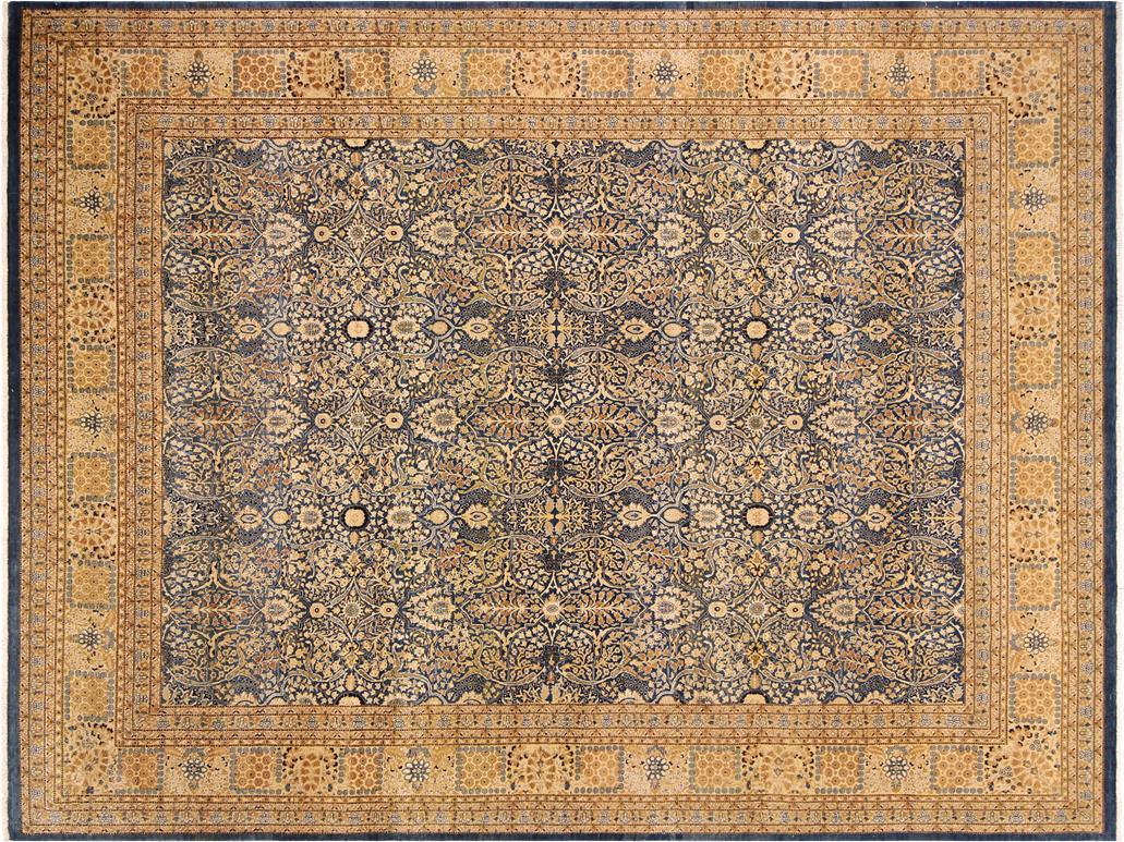 Antique Vegetable Dyed Tabriz Blue/Gold Wool Rug - 8'9'' x 11'10''