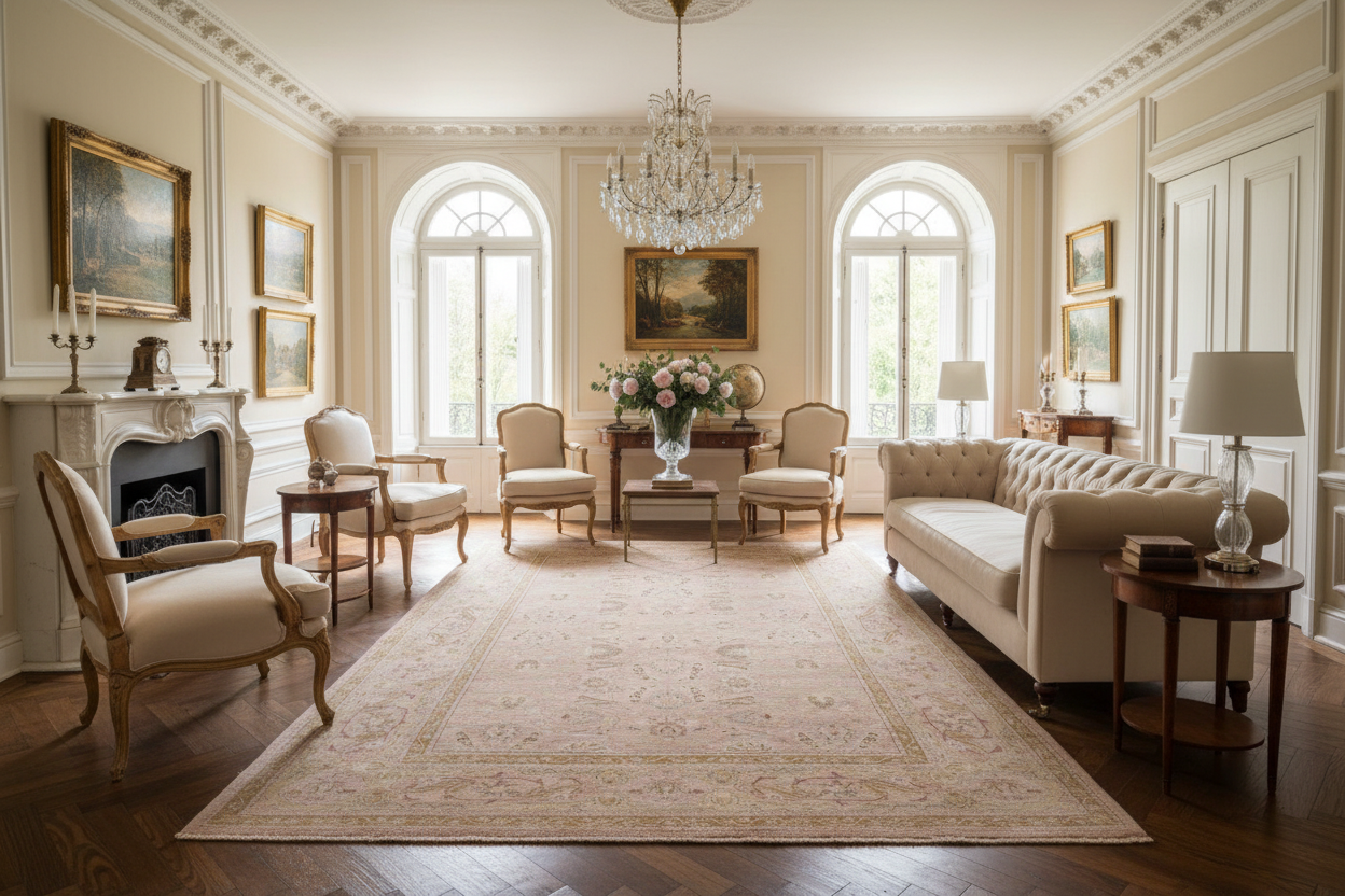 Each rug is meticulously hand-knotted by skilled artisans using 100% hand-spun wool and all-natural vegetable dyes, ensuring exceptional durability and heirloom quality, which blends perfectly with traditional and transitional interiors.