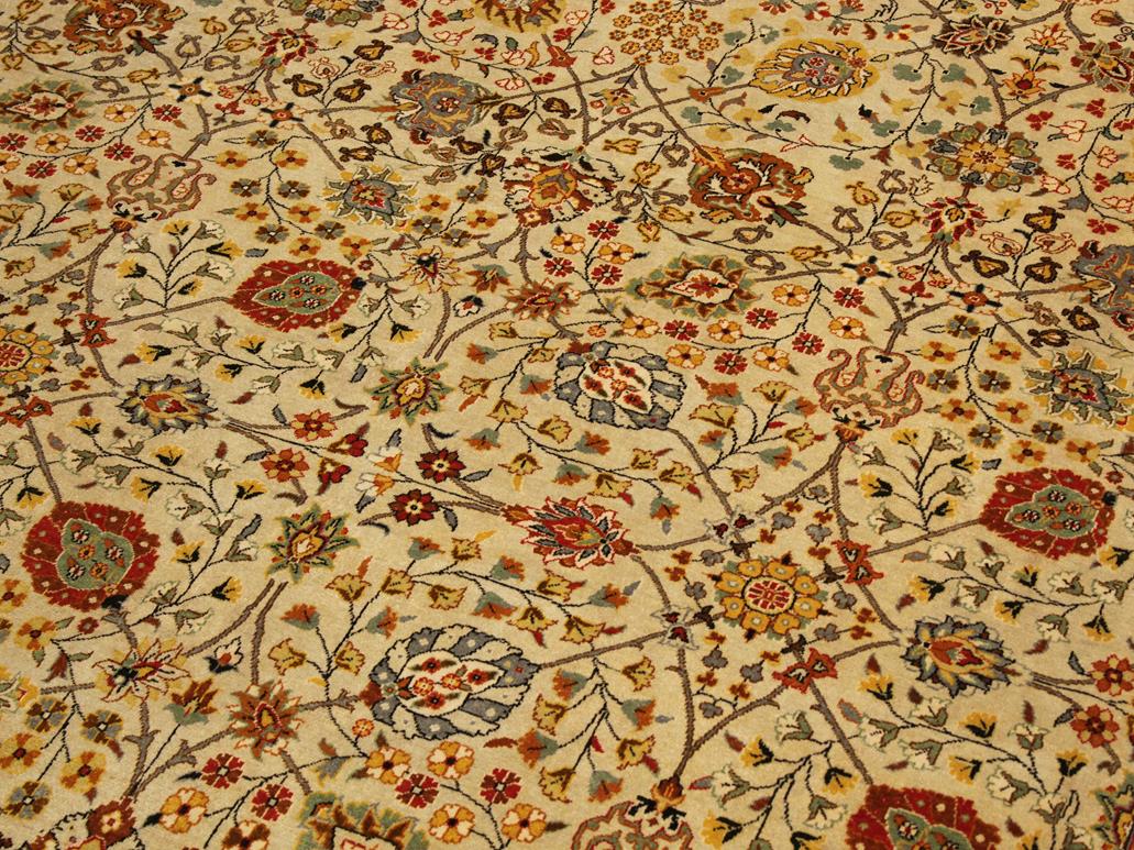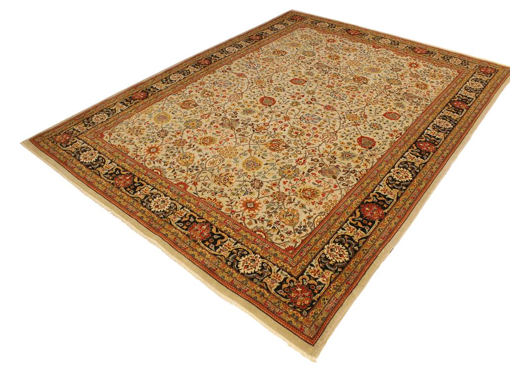 Designed with a mesmerizing intricate traditional motif this glorious hand knotted rug is a masterpiece that will fill any space with sophistication and grace. An exhilarating color pallet with an elaborate design, this masterpiece features luxurious hand spun wool with all vegetable dyes to add comfort and style to your decor. The design, color and beautiful chromatic composition with a sheen in traditional and transitional designs, exude beauty, elegance and quality make this rug a masterpiece of its own.