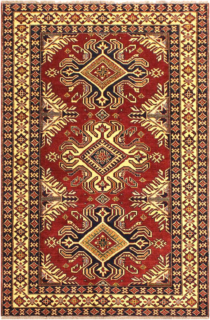 Bohemian Super Kazak Jamika Red/Beige Wool Rug - 4'1'' x 6'0''