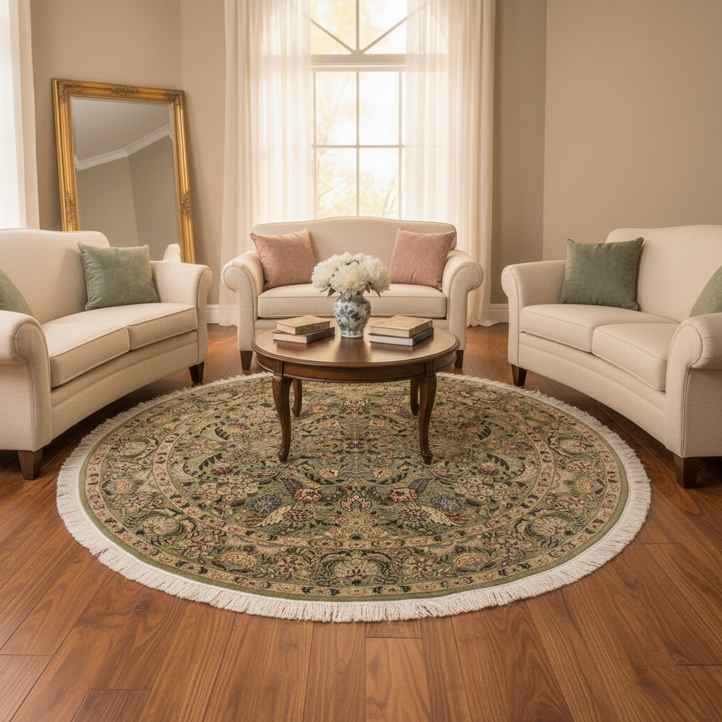 Rug Size: 6'2''X6'3''Material: WoolStyle: Persian, Oriental, Renaissance, Art NouveauColors: Green Grey Red BlueWeave Type: Hand Knotted, HandmadePile Height: 0.25 - 0.50 inch